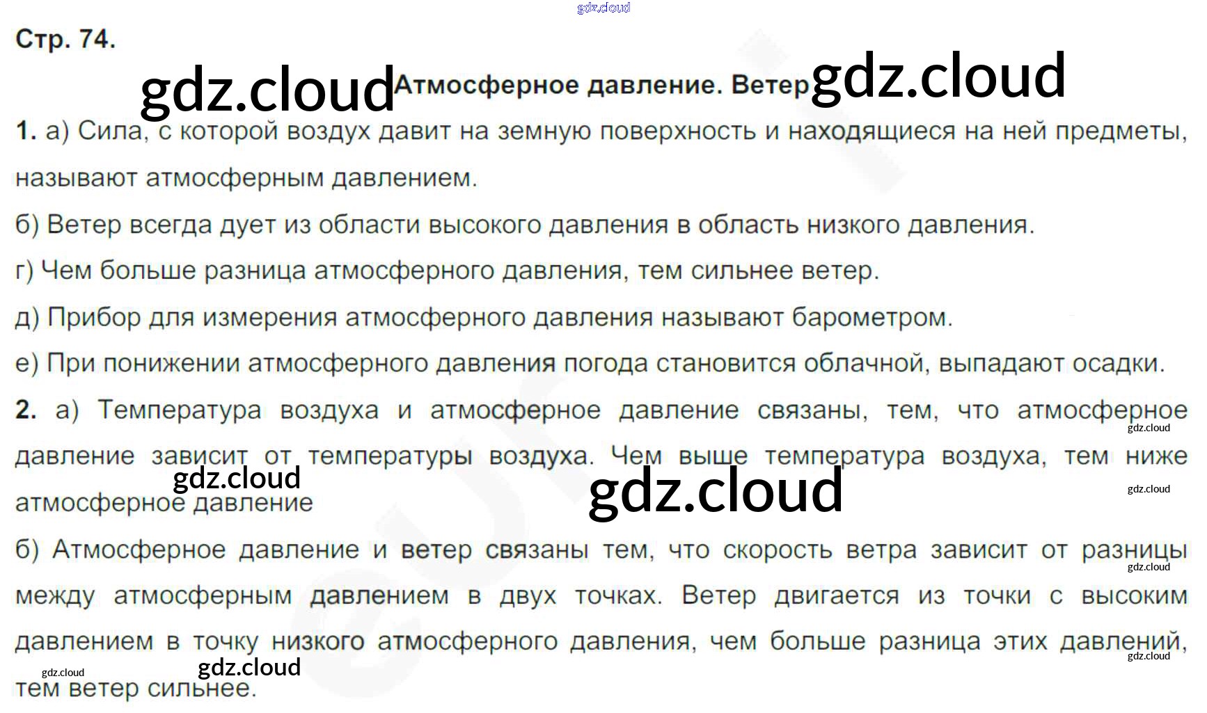 Ответ на задание 74 Рабочая тетрадь География за 6 (шестой) класс Румянцев, Ким, Климанова Вертикаль 2015 ФГОС онлайн и без номера телефона.