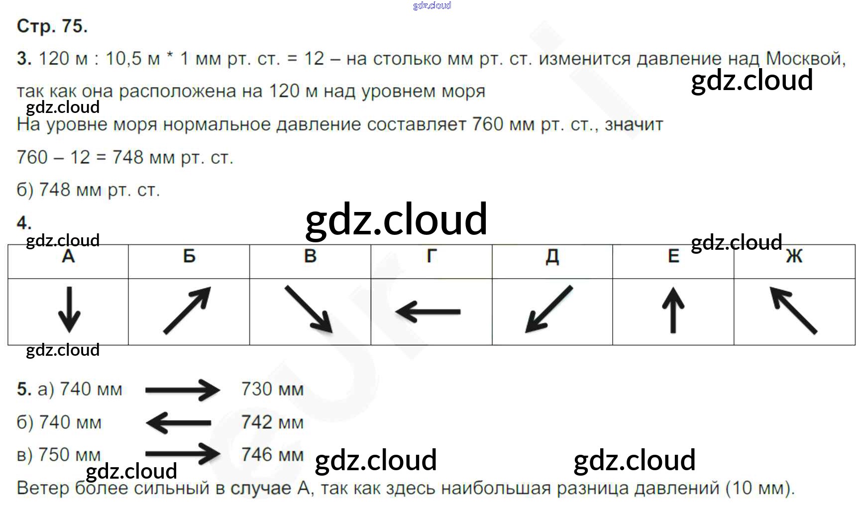 Ответ на задание 75 Рабочая тетрадь География за 6 (шестой) класс Румянцев, Ким, Климанова Вертикаль 2015 ФГОС онлайн и без номера телефона.