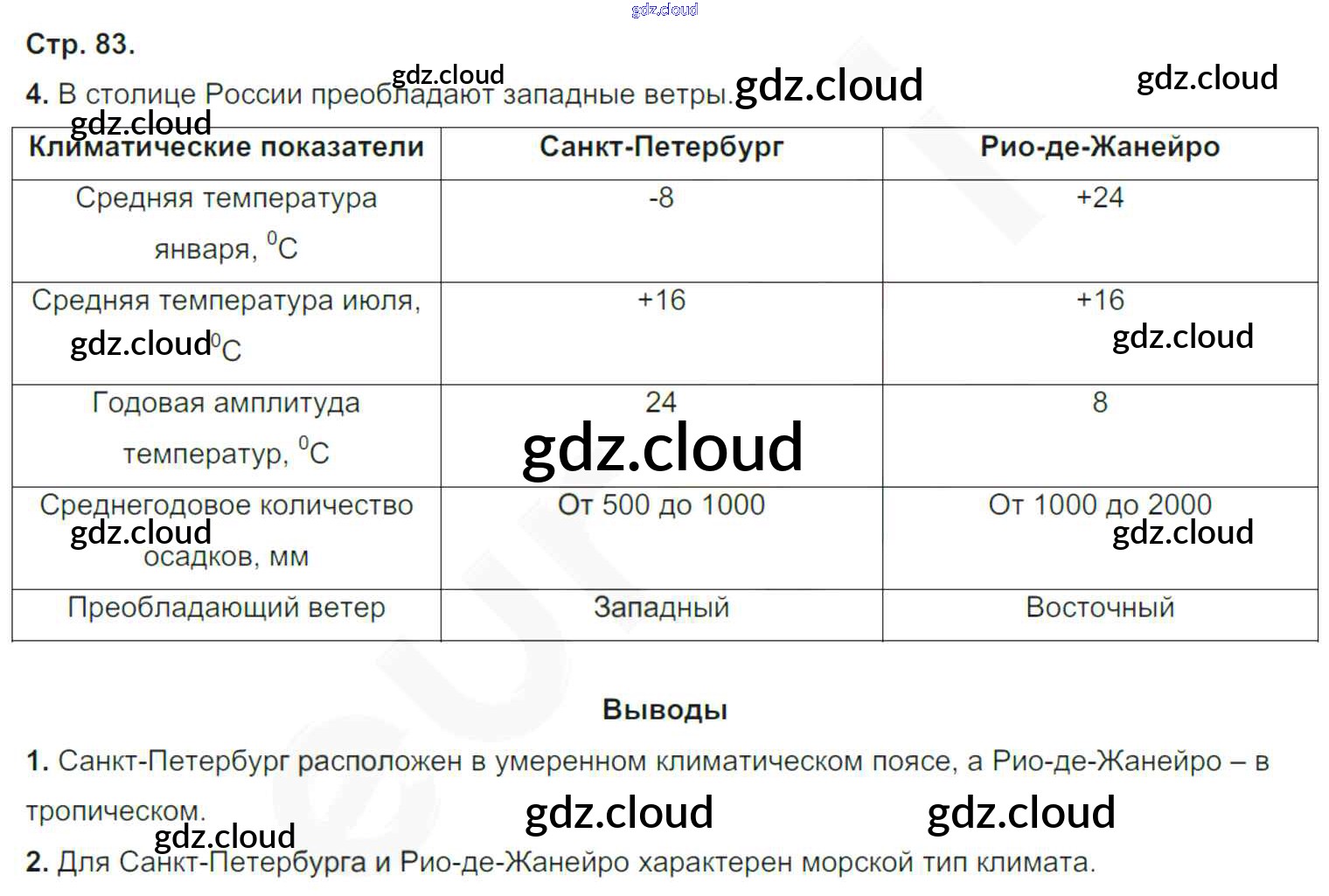 Ответ на задание 83 Рабочая тетрадь География за 6 (шестой) класс Румянцев, Ким, Климанова Вертикаль 2015 ФГОС онлайн и без номера телефона.