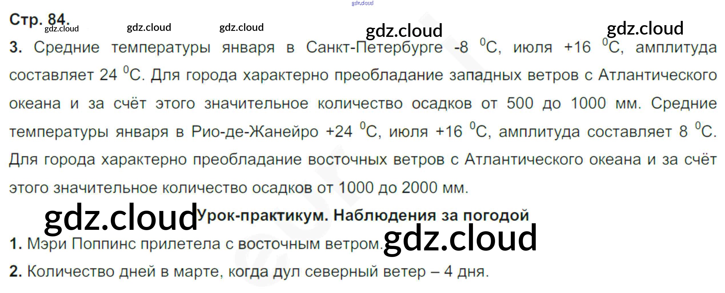 Ответ на задание 84 Рабочая тетрадь География за 6 (шестой) класс Румянцев, Ким, Климанова Вертикаль 2015 ФГОС онлайн и без номера телефона.