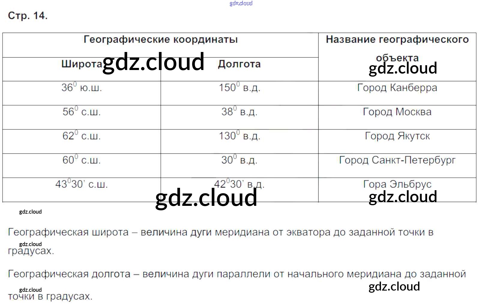 Ответ на задание 14 Рабочая тетрадь География за 5, 6 (пятый, шестой) класс Сиротин 2019 ФГОС онлайн и без номера телефона.