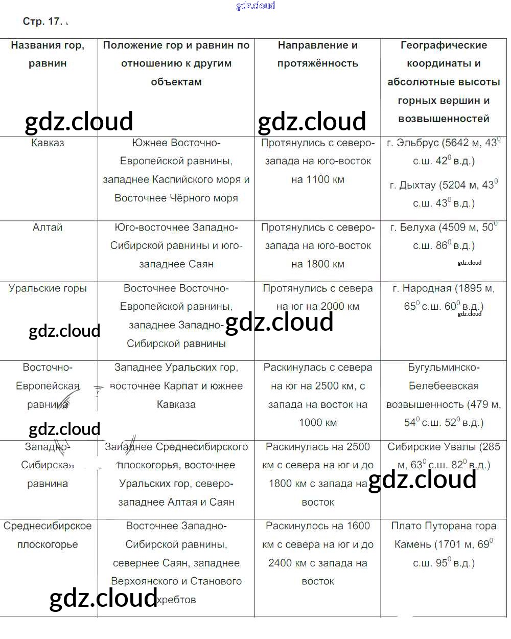 Ответ на задание 17 Рабочая тетрадь География за 5, 6 (пятый, шестой) класс Сиротин 2019 ФГОС онлайн и без номера телефона.