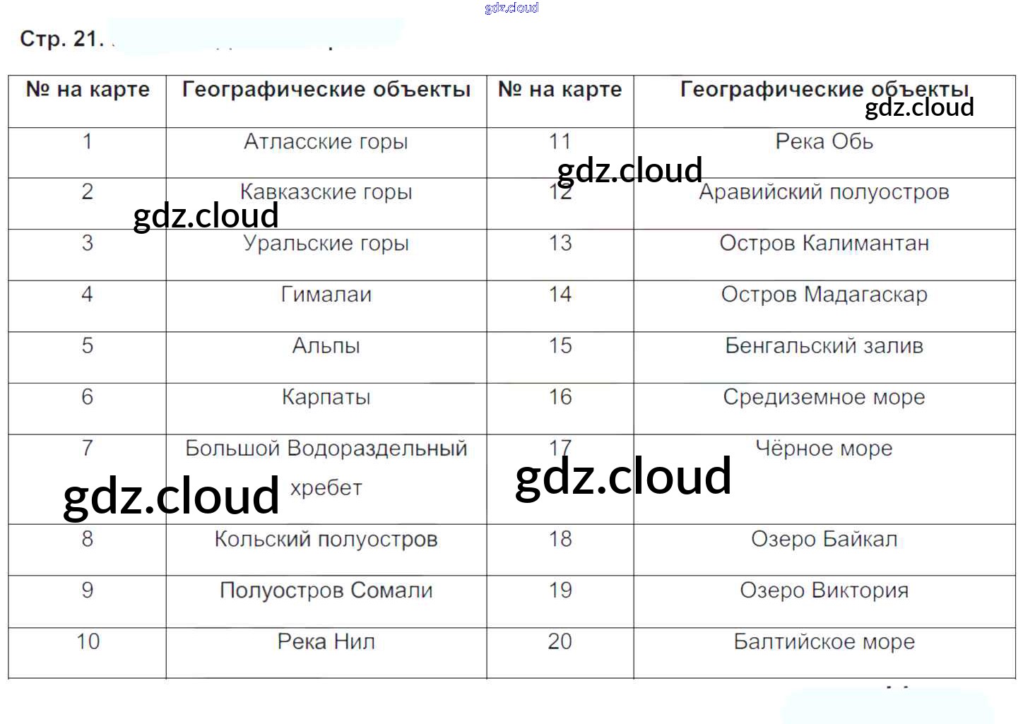 Ответ на задание 21 Рабочая тетрадь География за 5, 6 (пятый, шестой) класс Сиротин 2019 ФГОС онлайн и без номера телефона.
