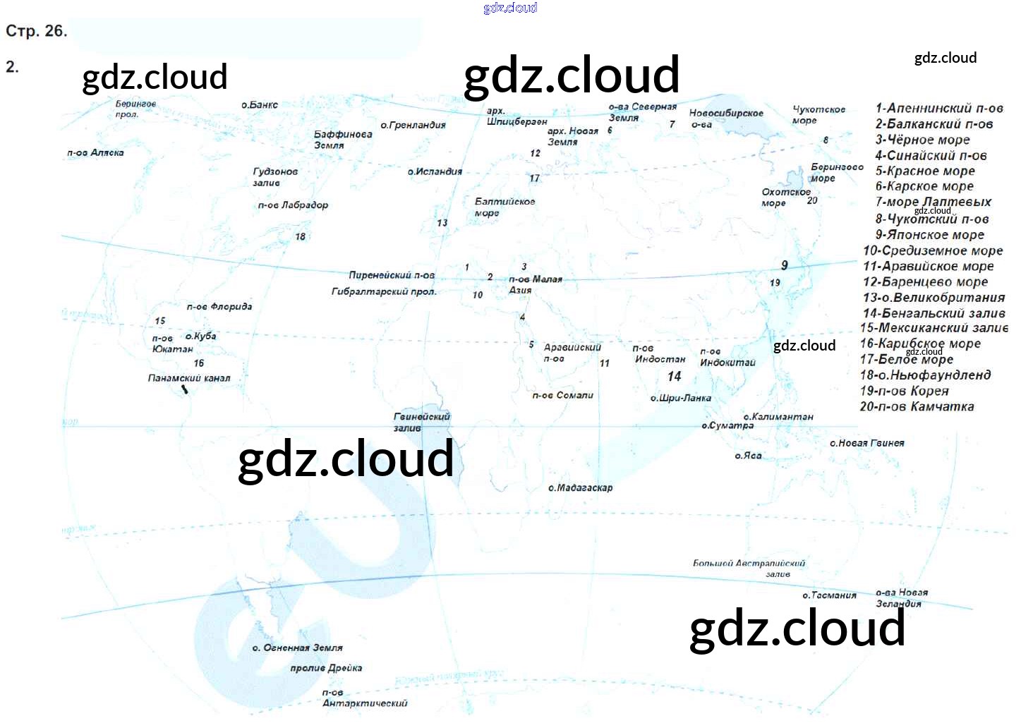 Ответ на задание 26 Рабочая тетрадь География за 5, 6 (пятый, шестой) класс Сиротин 2019 ФГОС онлайн и без номера телефона.