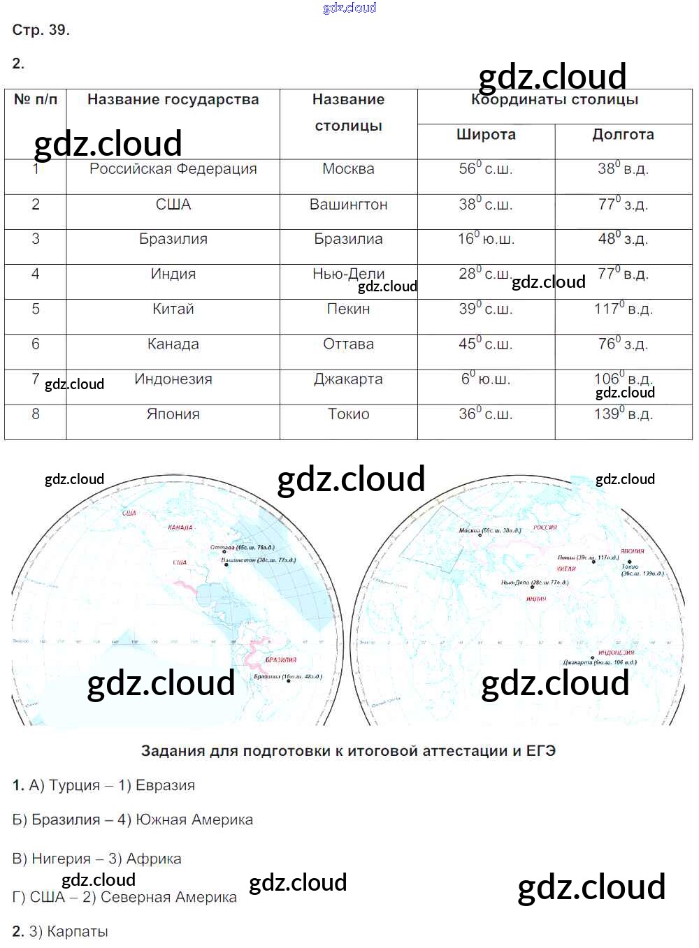 Ответ на задание 39 Рабочая тетрадь География за 5, 6 (пятый, шестой) класс Сиротин 2019 ФГОС онлайн и без номера телефона.