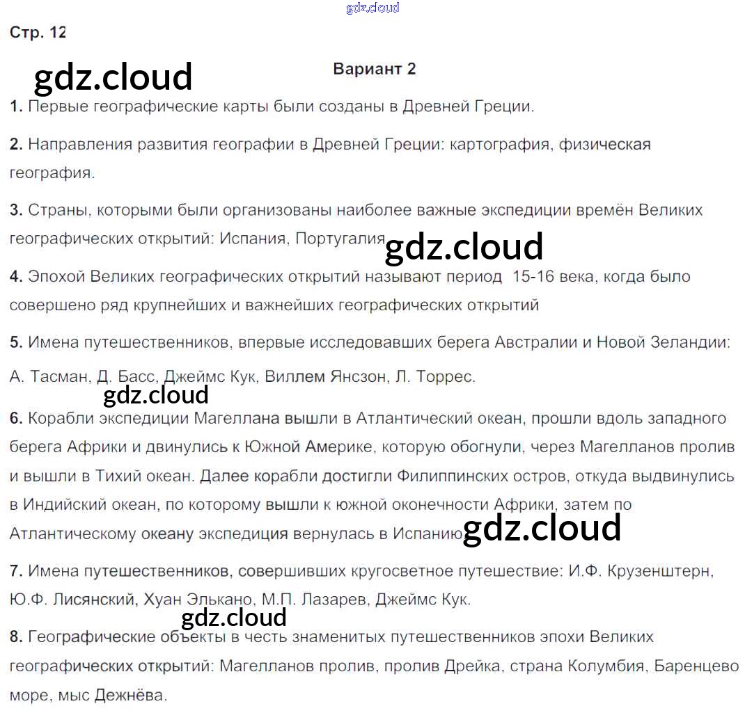 Ответ на задание 12 Тетрадь-экзаменатор География за 5, 6 (пятый, шестой) класс Барабанов Сферы 2017 ФГОС онлайн и без номера телефона.