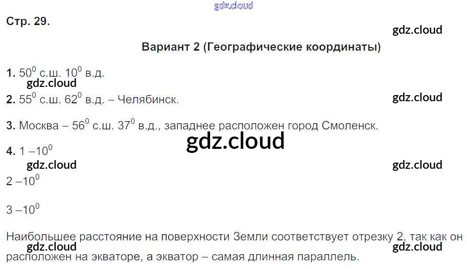 Ответ на задание 29 Тетрадь-экзаменатор География за 5, 6 (пятый, шестой) класс Барабанов Сферы 2017 ФГОС онлайн и без номера телефона.