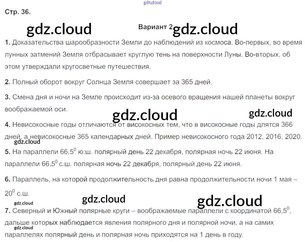 Ответ на задание 36 Тетрадь-экзаменатор География за 5, 6 (пятый, шестой) класс Барабанов Сферы 2017 ФГОС онлайн и без номера телефона.