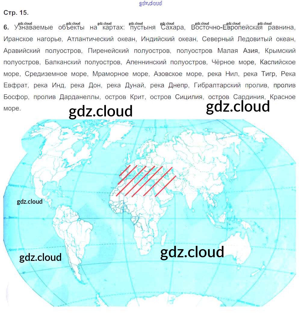 Ответ на задание стр.15 Тетрадь-тренажер География за 5, 6 (пятый, шестой) класс Лобжанидзе Сферы 2014 Часть 1, 2