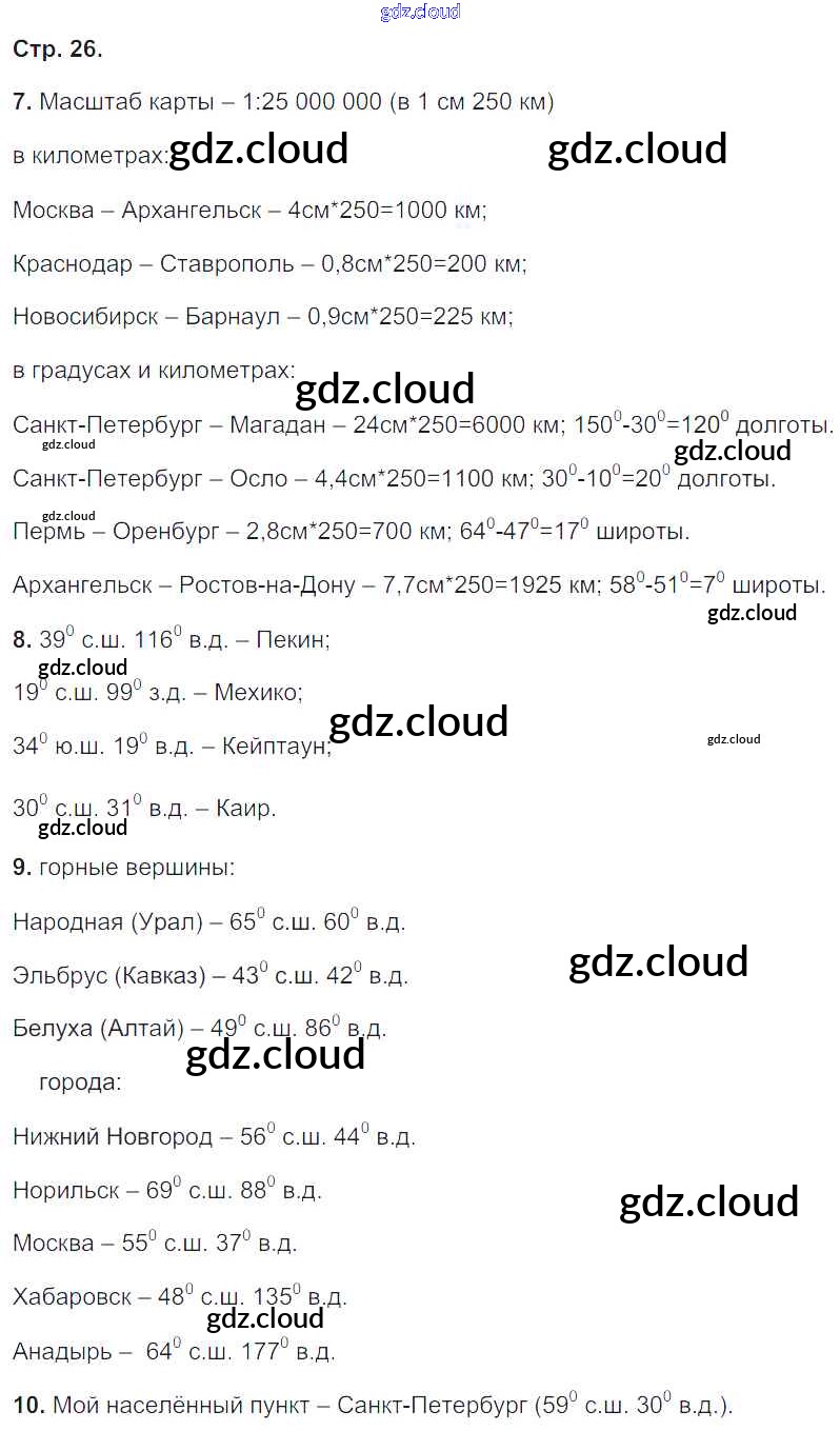 Ответ на задание стр.26 Тетрадь-тренажер География за 5, 6 (пятый, шестой) класс Лобжанидзе Сферы 2014 Часть 1, 2