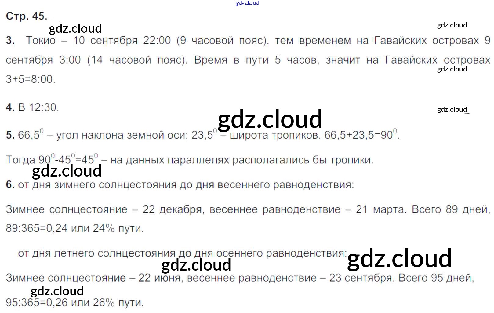 Ответ на задание стр.45 Тетрадь-тренажер География за 5, 6 (пятый, шестой) класс Лобжанидзе Сферы 2014 Часть 1, 2