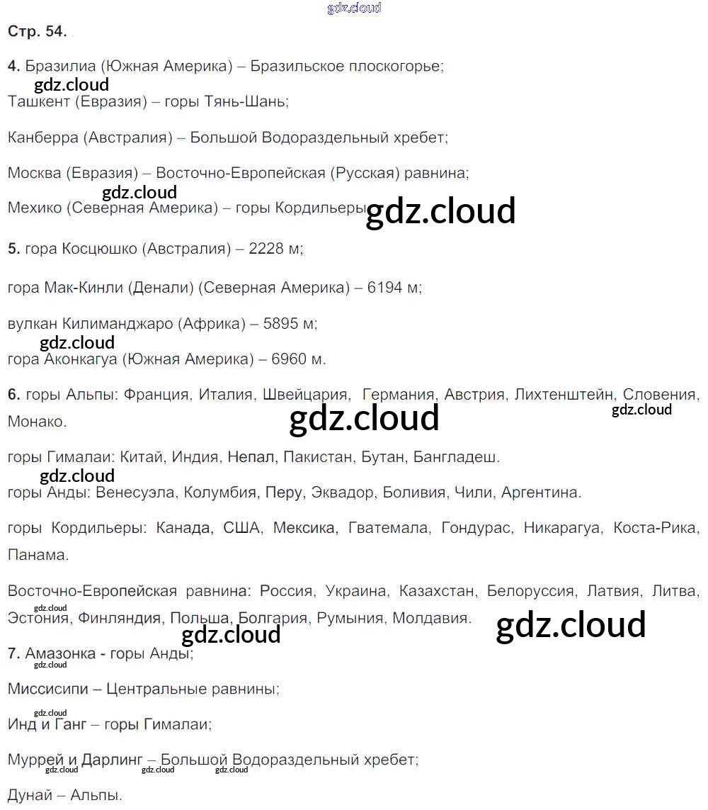 Ответ на задание стр.54 Тетрадь-тренажер География за 5, 6 (пятый, шестой) класс Лобжанидзе Сферы 2014 Часть 1, 2