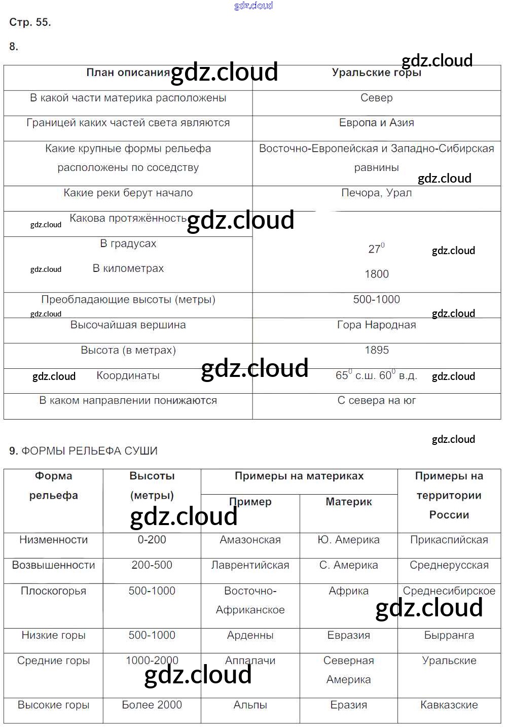 Ответ на задание стр.55 Тетрадь-тренажер География за 5, 6 (пятый, шестой) класс Лобжанидзе Сферы 2014 Часть 1, 2