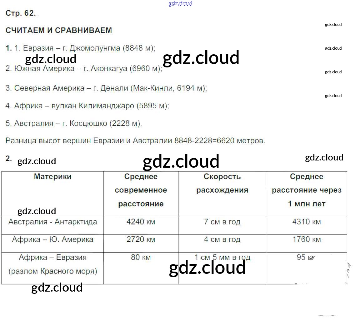 Ответ на задание стр.62 Тетрадь-тренажер География за 5, 6 (пятый, шестой) класс Лобжанидзе Сферы 2014 Часть 1, 2