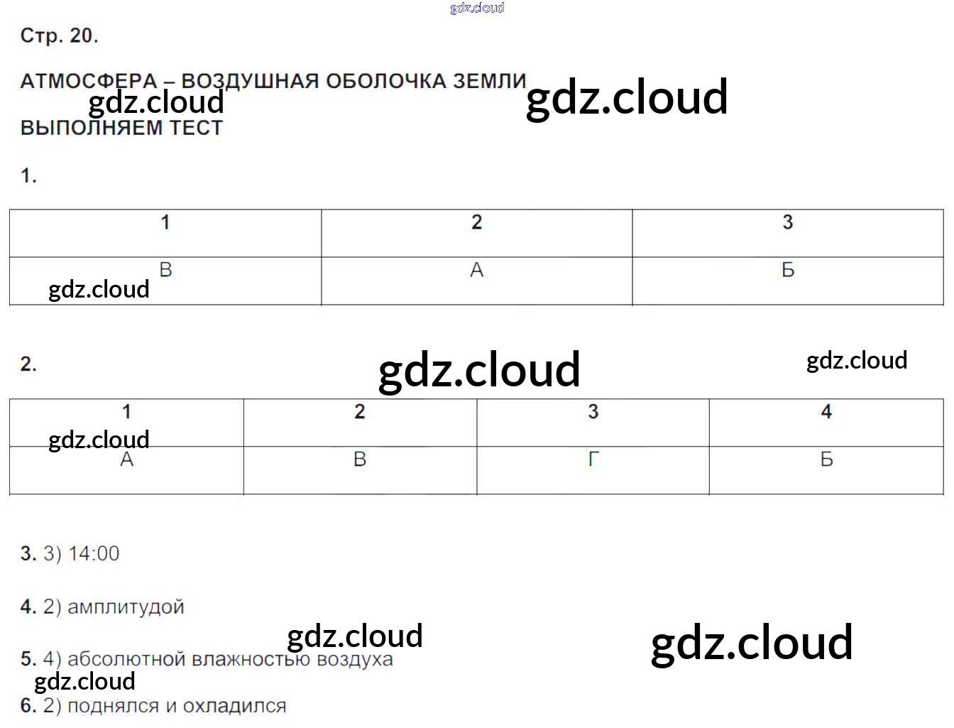 Ответ на задание стр.20 Тетрадь-тренажер География за 5, 6 (пятый, шестой) класс Лобжанидзе Сферы 2014 Часть 1, 2