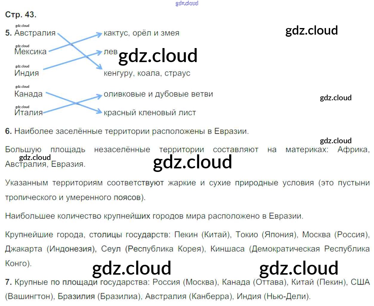 Ответ на задание стр.43 Тетрадь-тренажер География за 5, 6 (пятый, шестой) класс Лобжанидзе Сферы 2014 Часть 1, 2