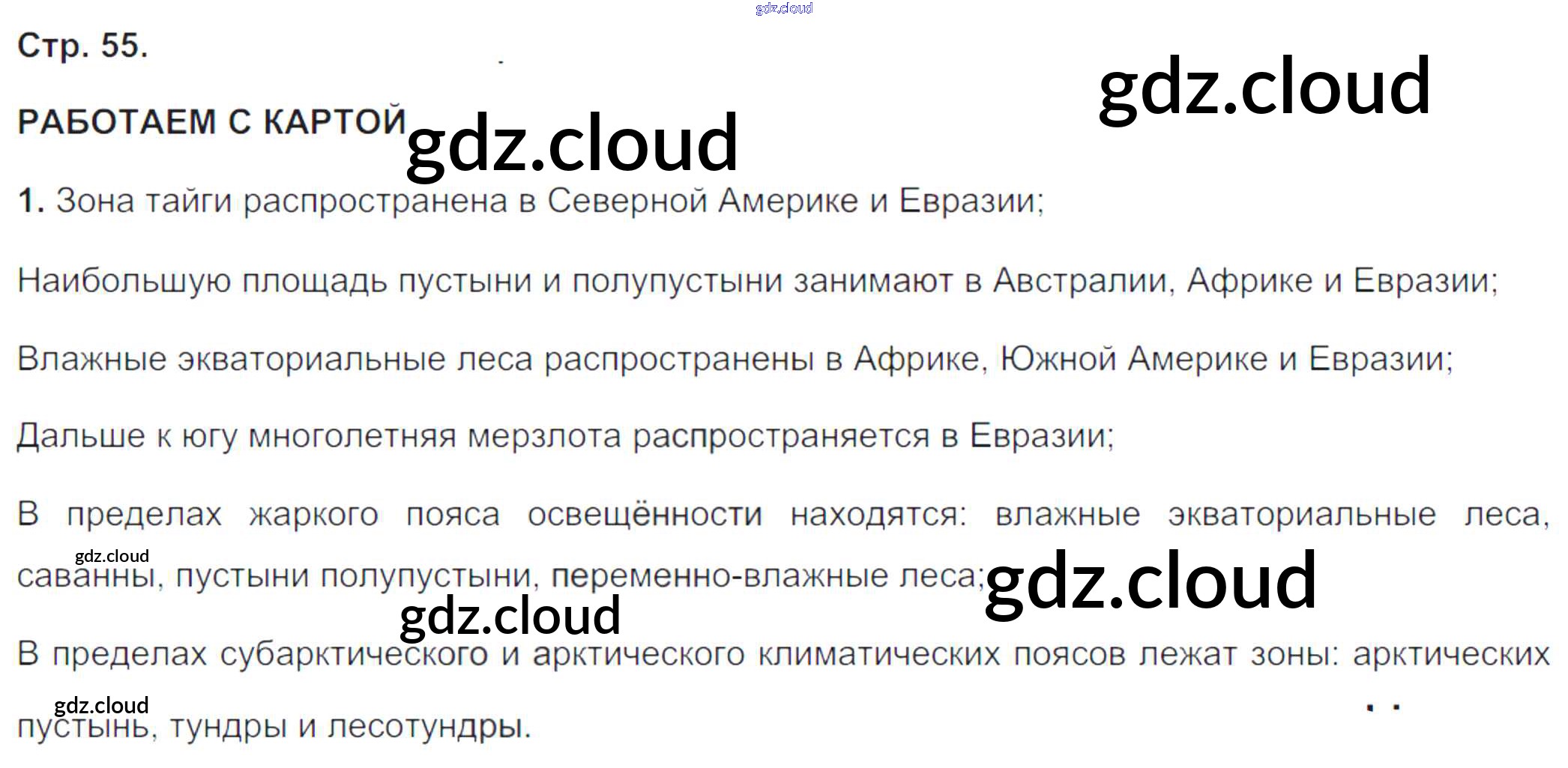 Ответ на задание стр.55 Тетрадь-тренажер География за 5, 6 (пятый, шестой) класс Лобжанидзе Сферы 2014 Часть 1, 2