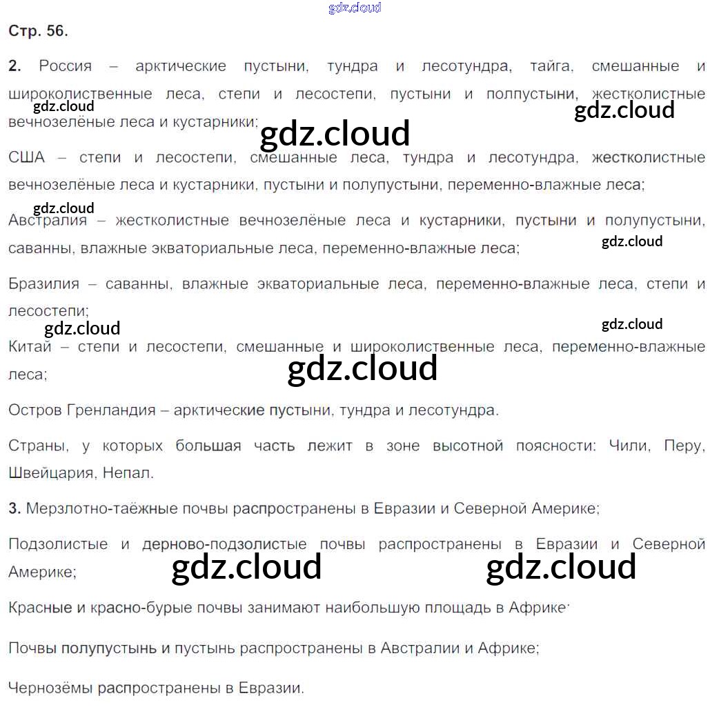 Ответ на задание стр.56 Тетрадь-тренажер География за 5, 6 (пятый, шестой) класс Лобжанидзе Сферы 2014 Часть 1, 2