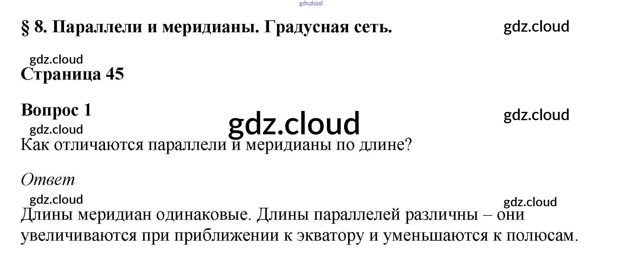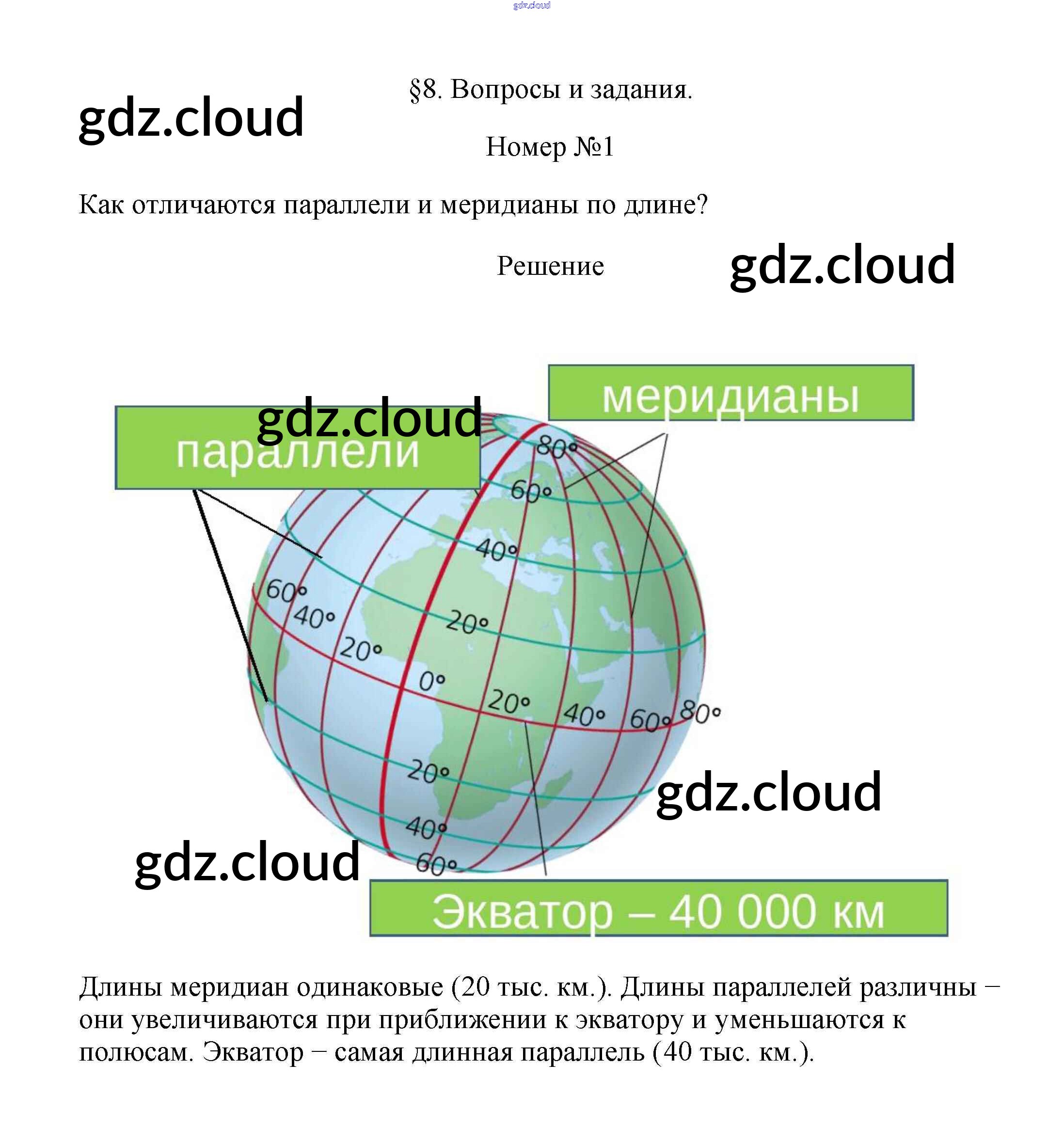 Вопросы и задания §8. Параллели и меридианы. Градусная сеть по Географии 5, 6 класс Учебник Климанова Вертикаль Дрофа
