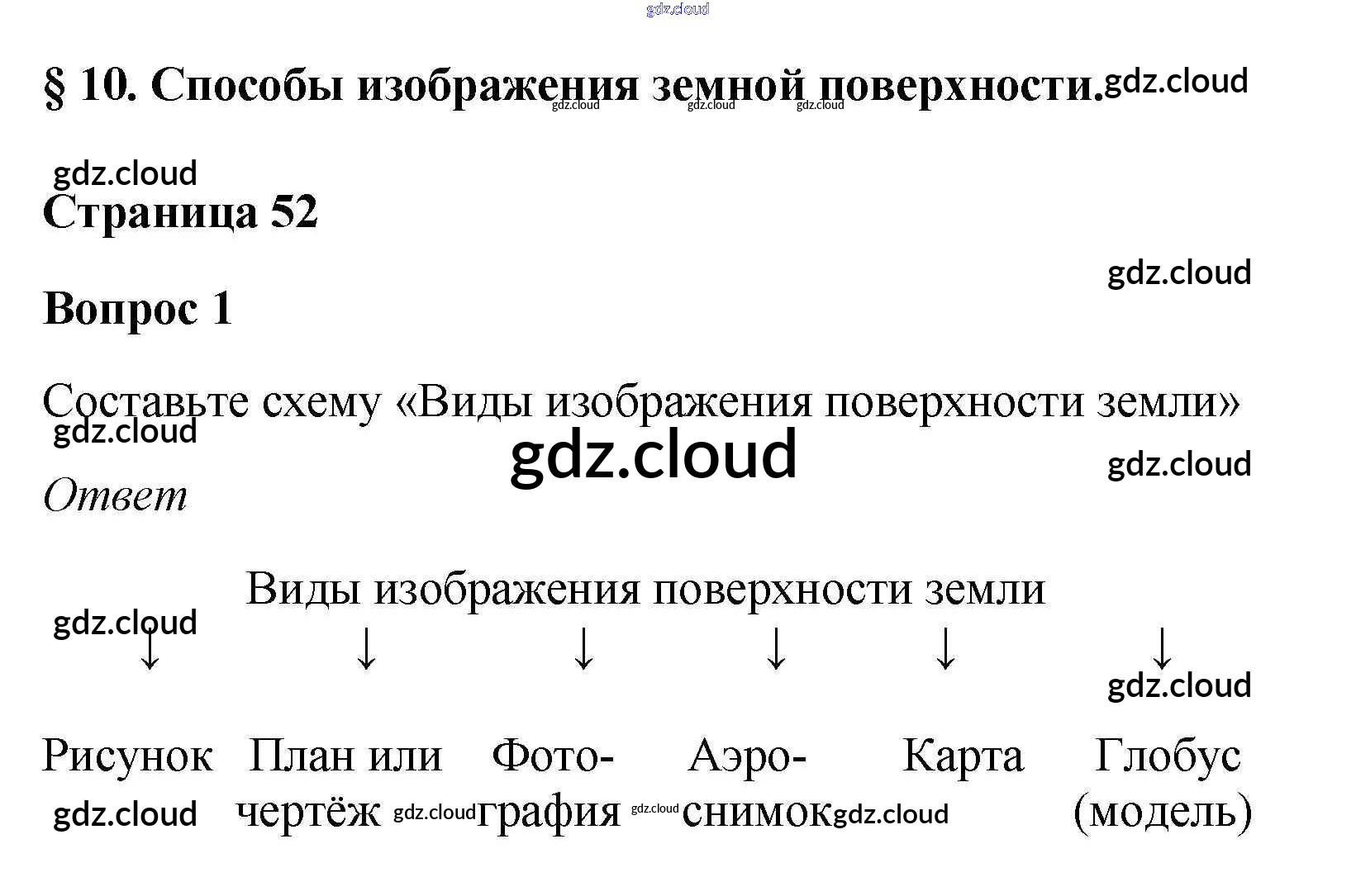 Вопросы и задания §10. Способы изображения земной поверхности по Географии 5, 6 класс Учебник Климанова Вертикаль Дрофа