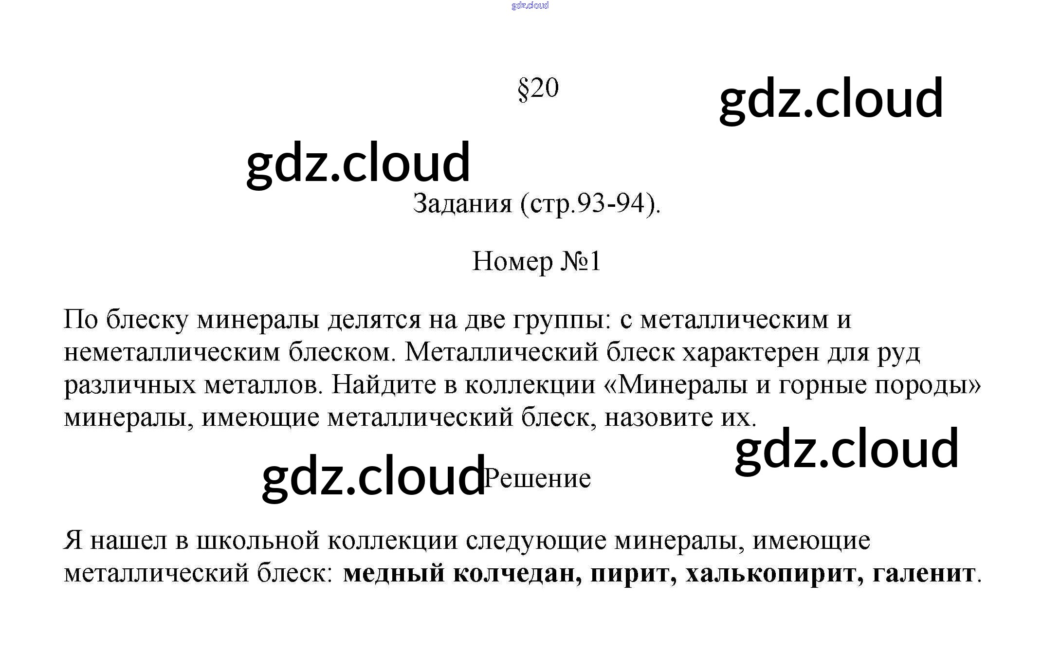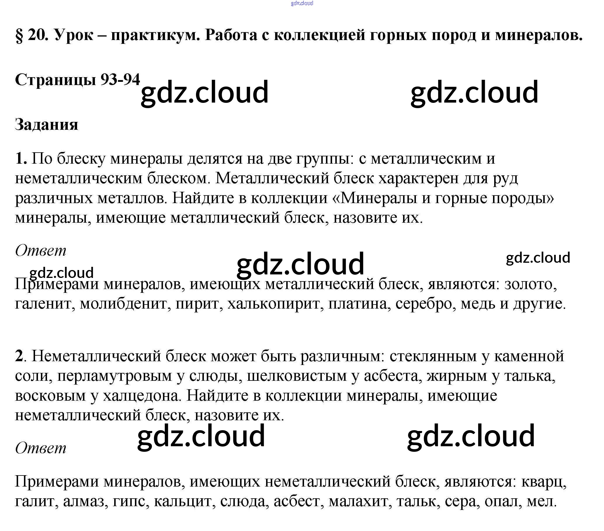 Задания §20. Урок-практикум. Работа с коллекцией горных пород и минералов по Географии 5, 6 класс Учебник Климанова Вертикаль Дрофа