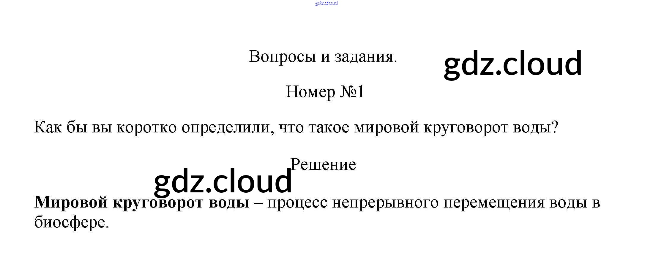 Вопросы и задания §23. Мировой круговорот воды по Географии 5, 6 класс Учебник Климанова Вертикаль Дрофа
