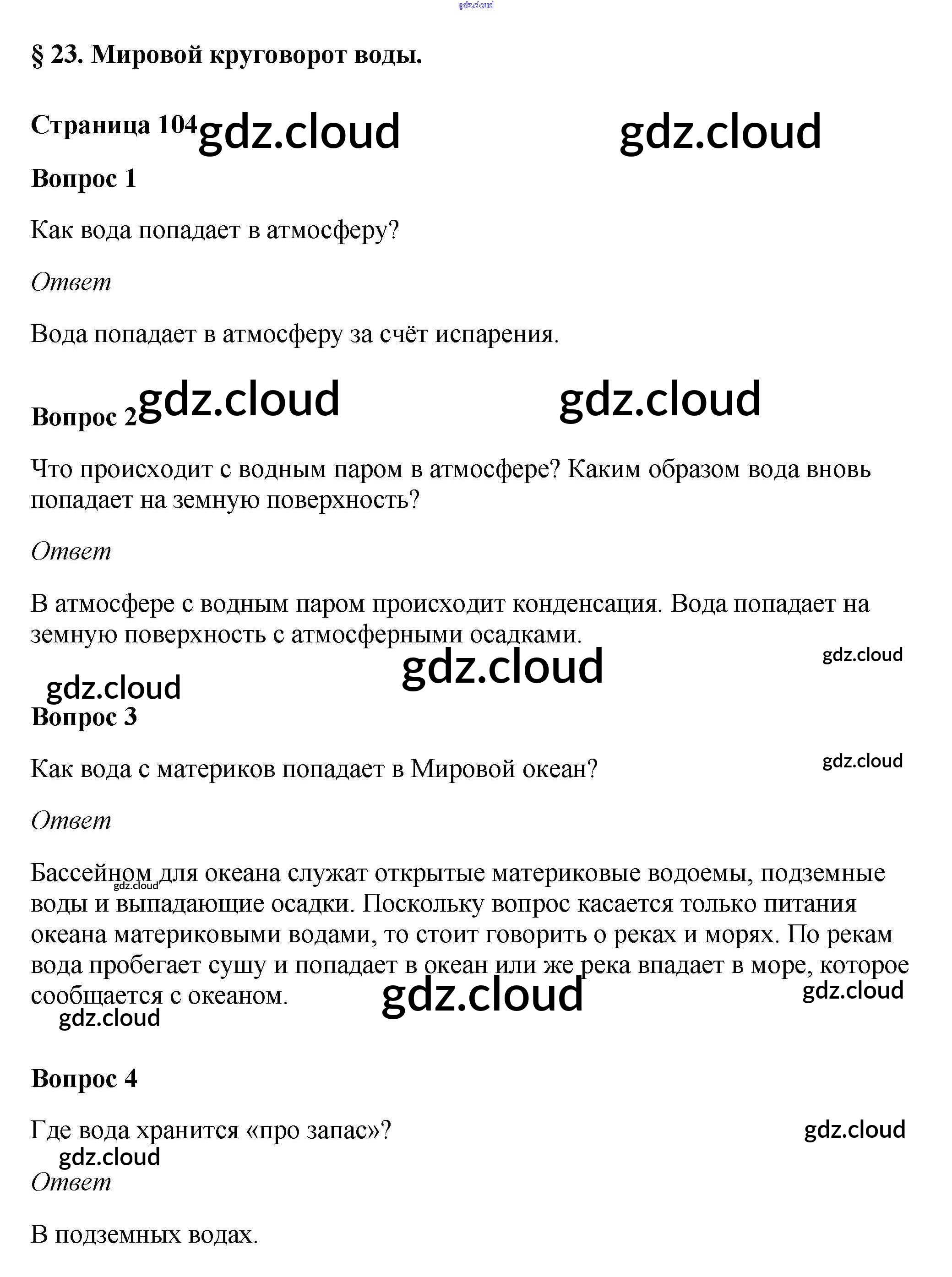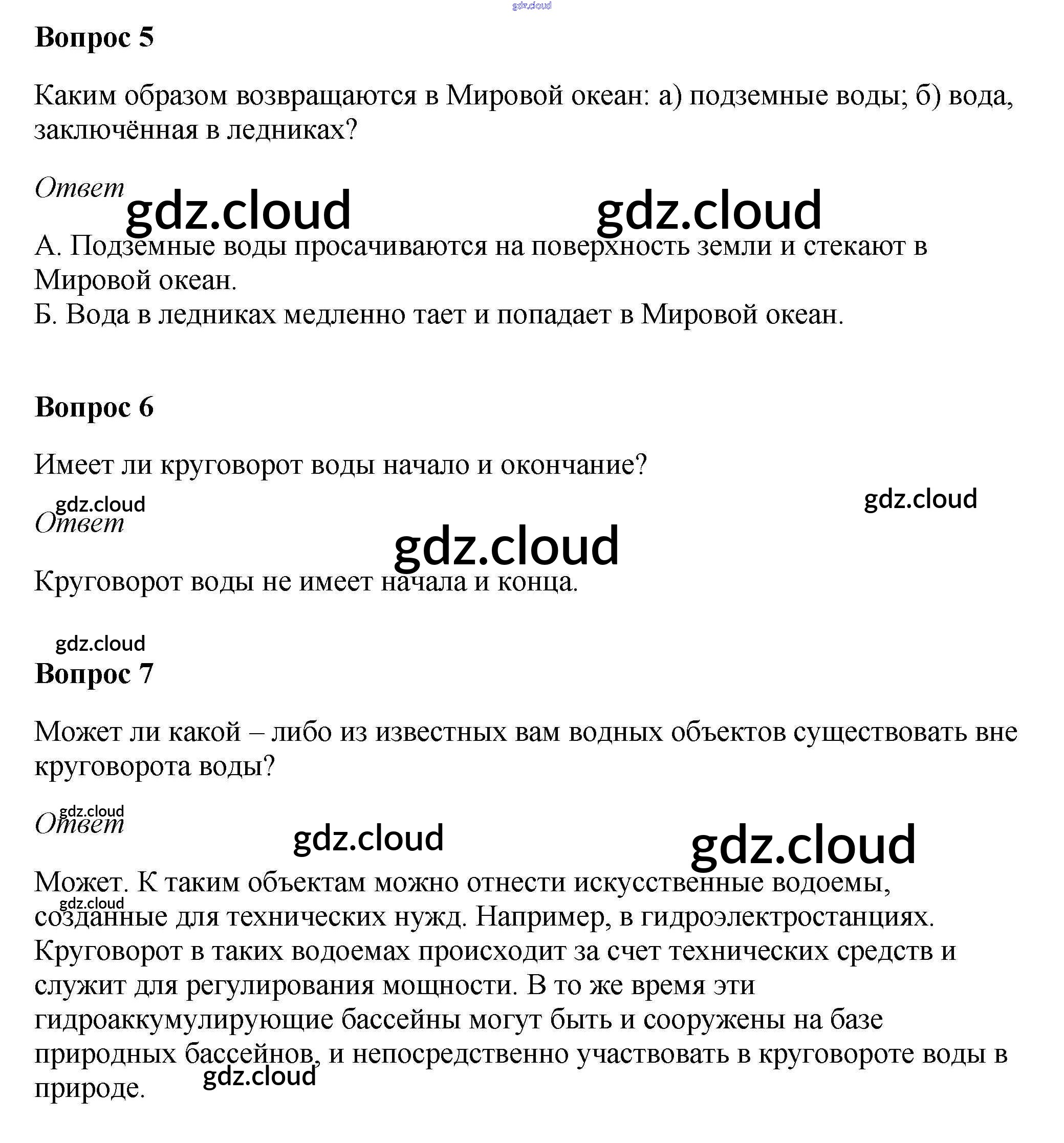 Вопросы к рисункам §23. Мировой круговорот воды по Географии 5, 6 класс Учебник Климанова Вертикаль Дрофа