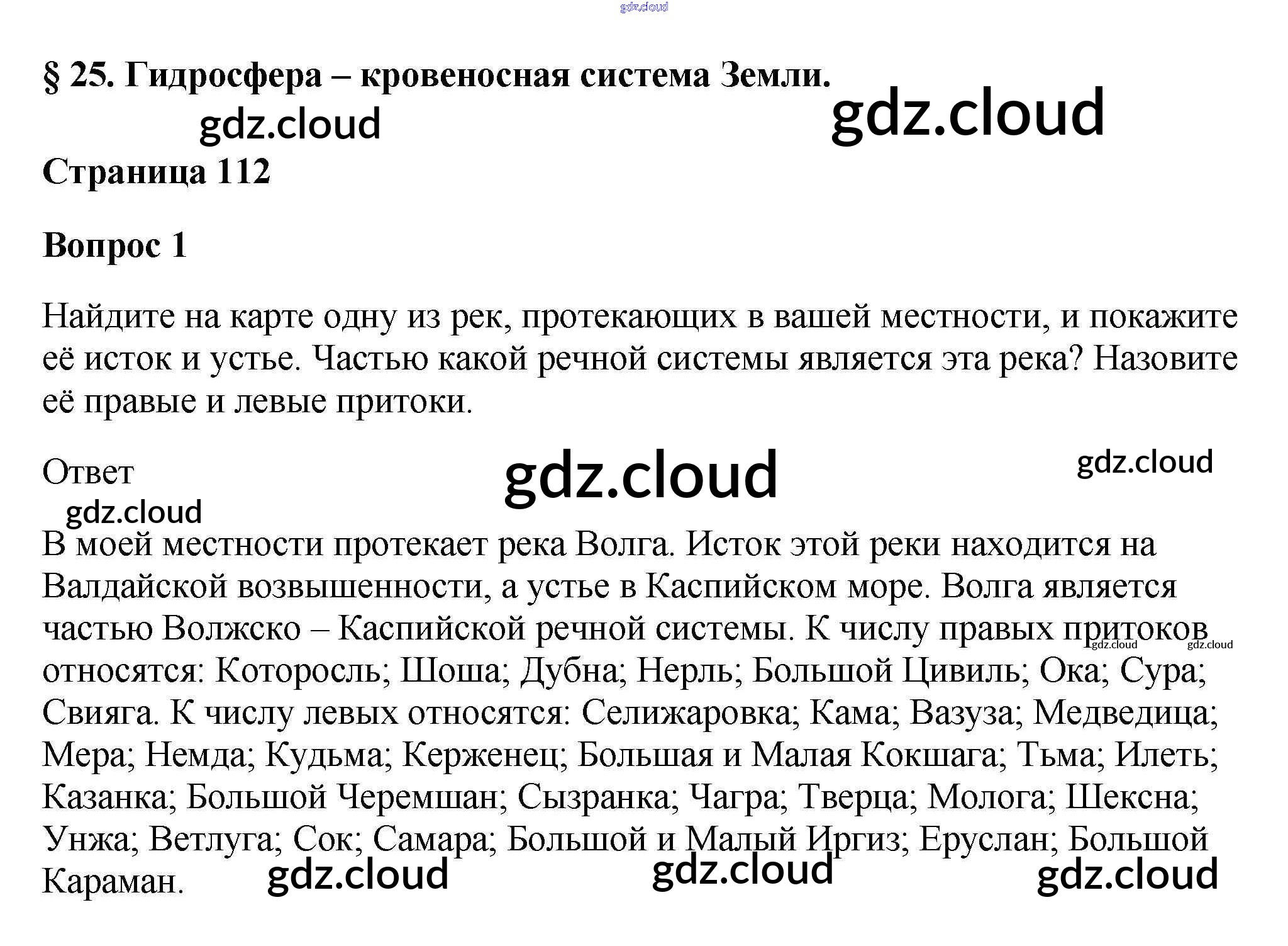 Вопросы и задания §25. Гидросфера — кровеносная система Земли по Географии 5, 6 класс Учебник Климанова Вертикаль Дрофа