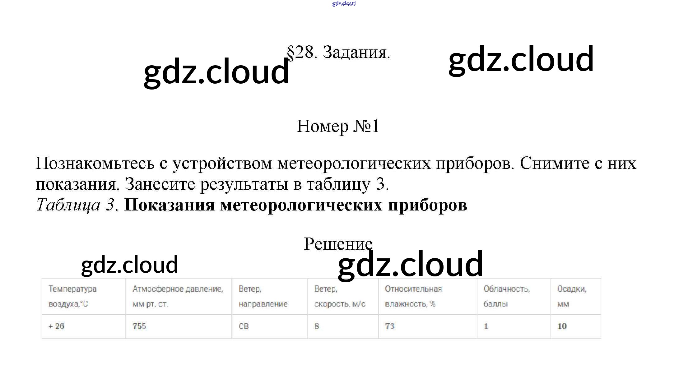 Задания §28. Урок-практикум. Знакомство с метеорологическими приборами и наблюдение за погодой по Географии 5, 6 класс Учебник Климанова Вертикаль Дрофа