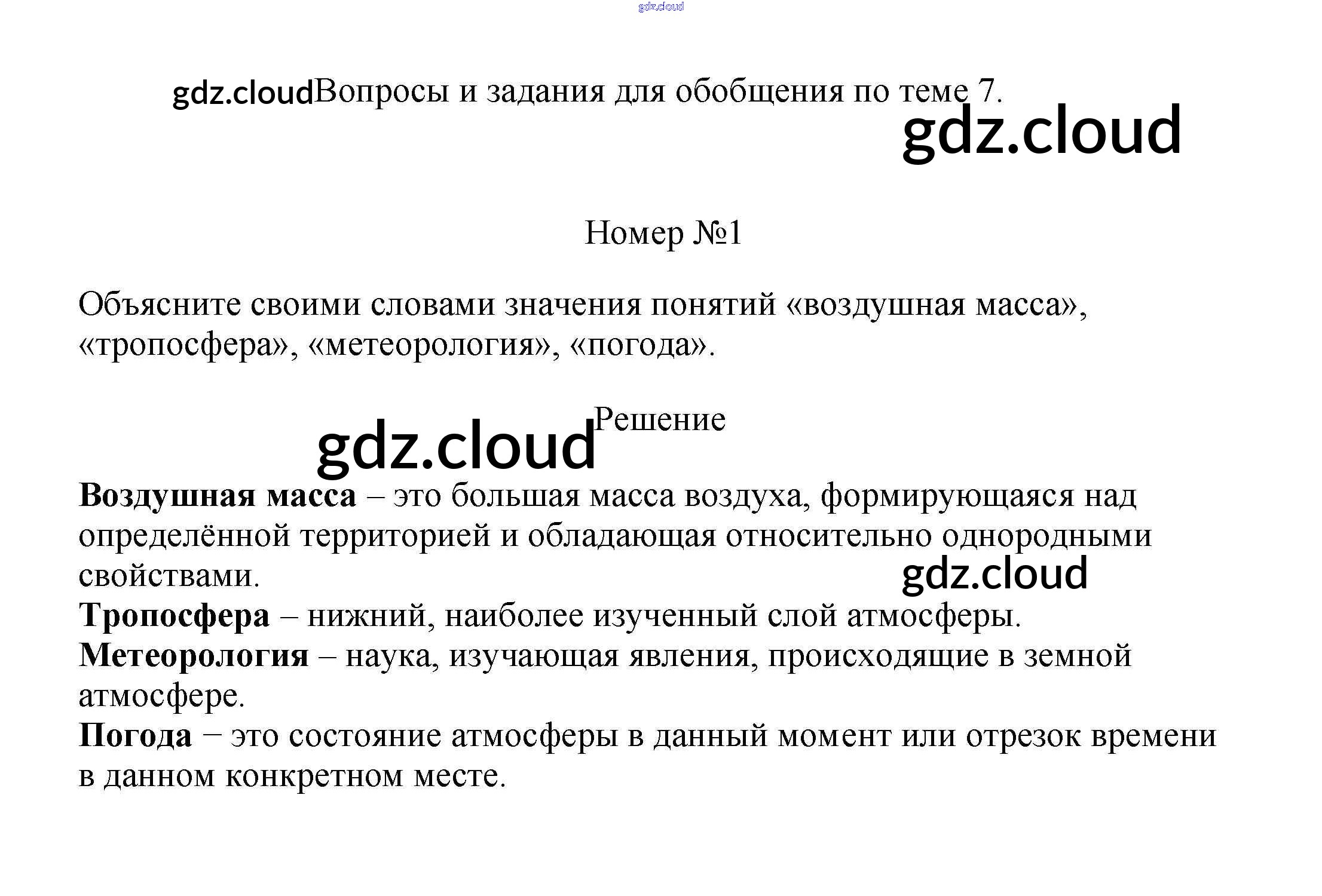 Вопросы и задания для обобщения по теме 7 по Географии 5, 6 класс Учебник Климанова Вертикаль Дрофа