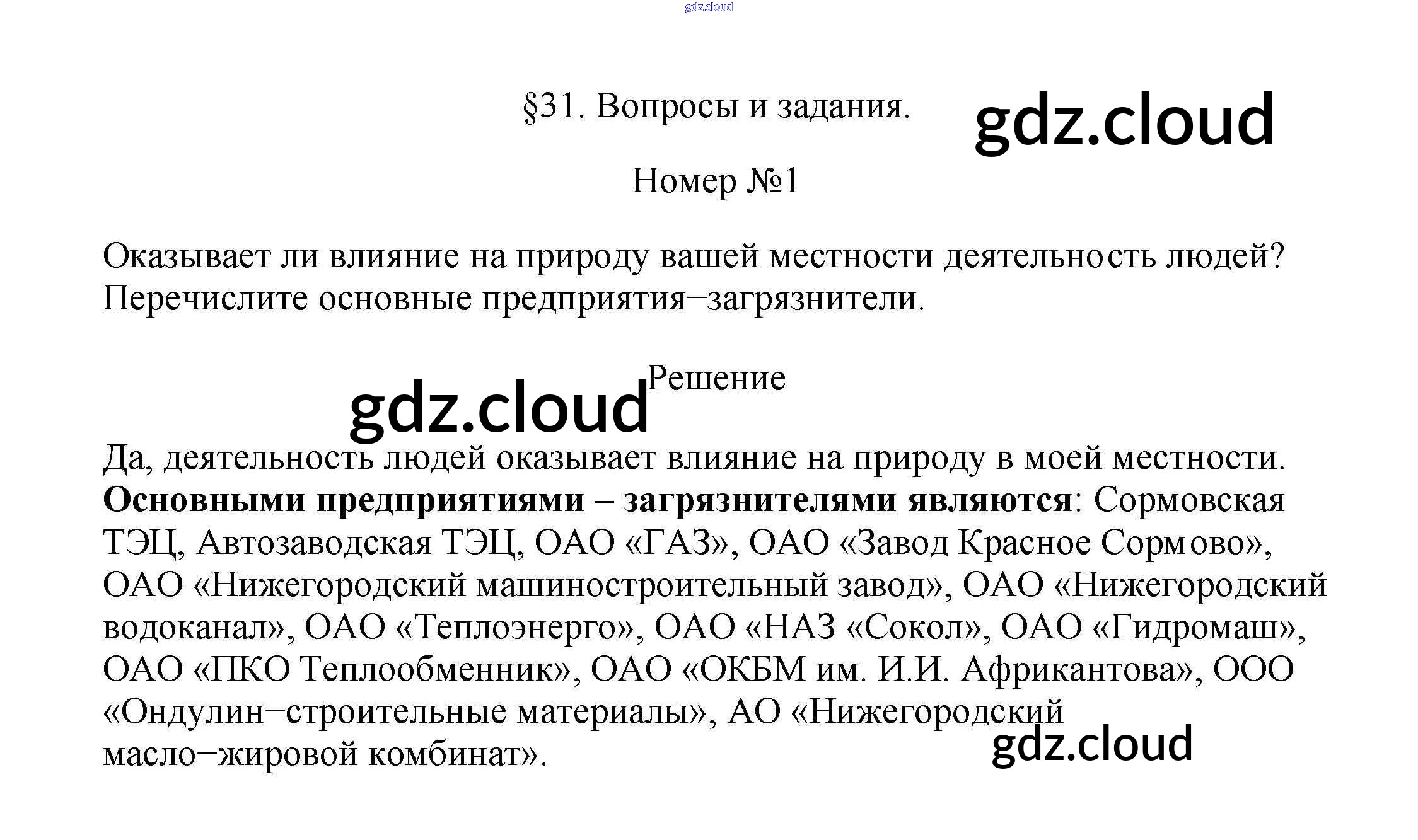 Вопросы и задания §31. Воздействие человека на природу Земли по Географии 5, 6 класс Учебник Климанова Вертикаль Дрофа