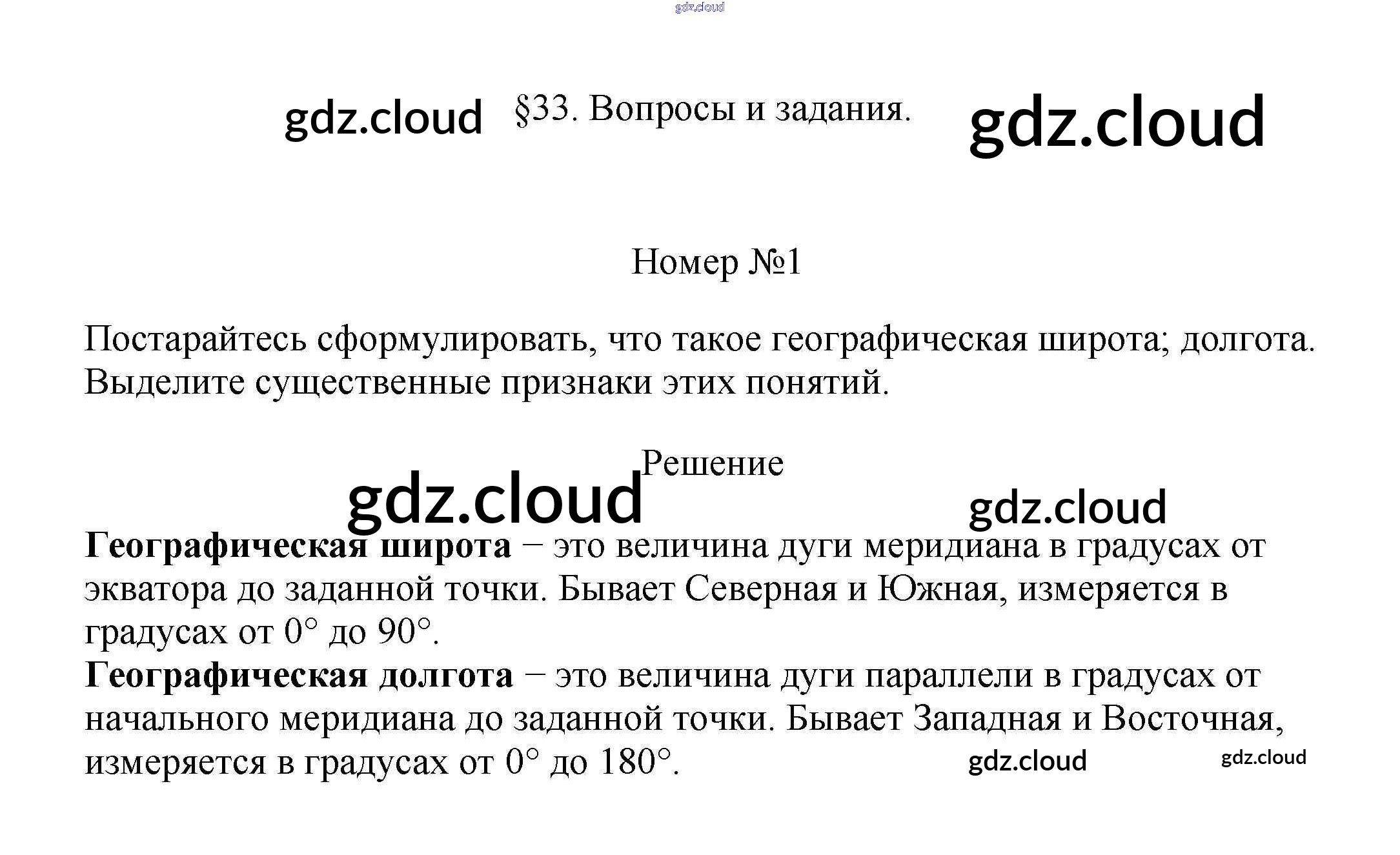 Вопросы и задания §33. Географические координаты по Географии 5, 6 класс Учебник Климанова Вертикаль Дрофа