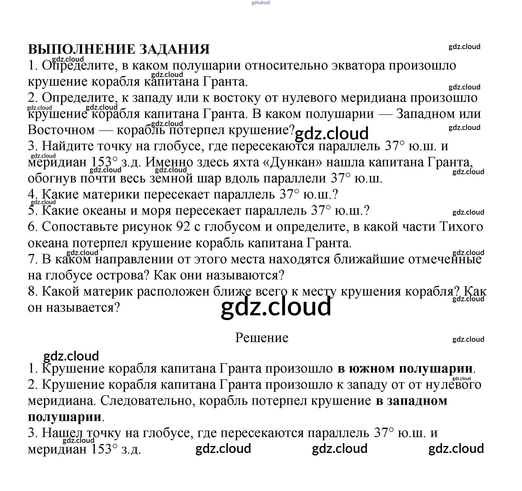 Задания §34. Урок-практикум. Определение географических координат точки по глобусу по Географии 5, 6 класс Учебник Климанова Вертикаль Дрофа