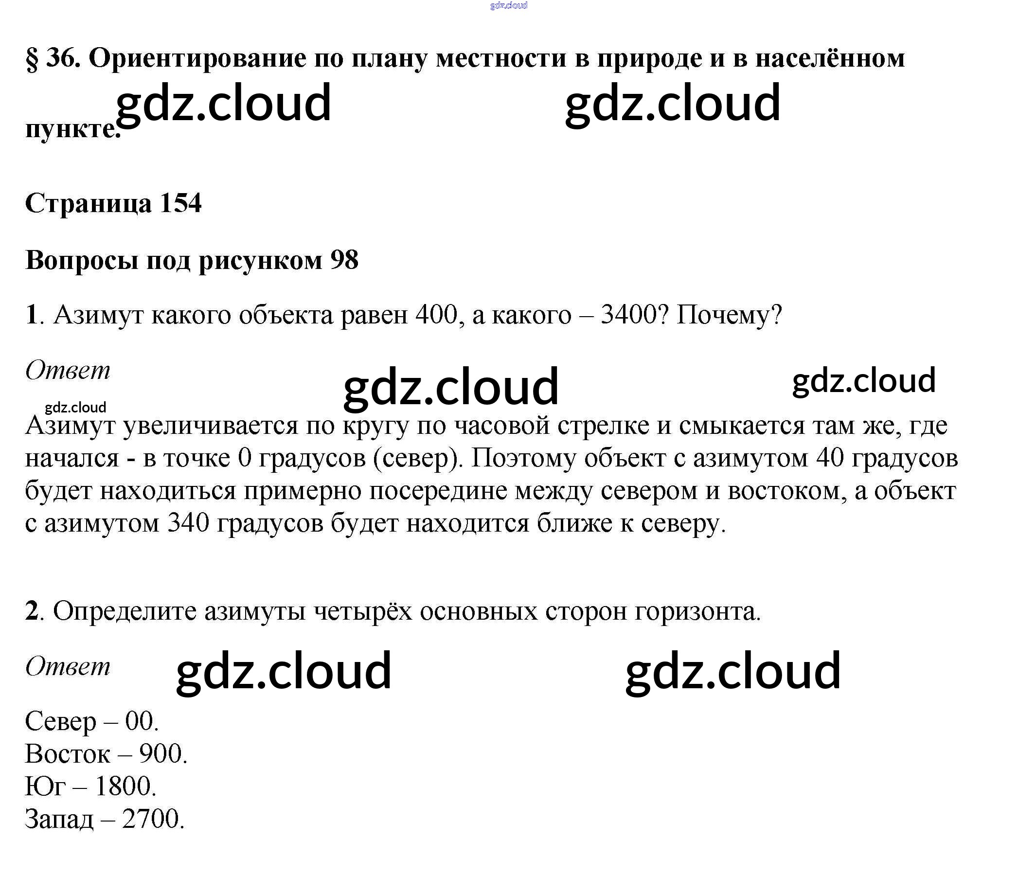 Вопросы к рисункам §36. Ориентирование по плану местности в природе и в населённом пункте по Географии 5, 6 класс Учебник Климанова Вертикаль Дрофа