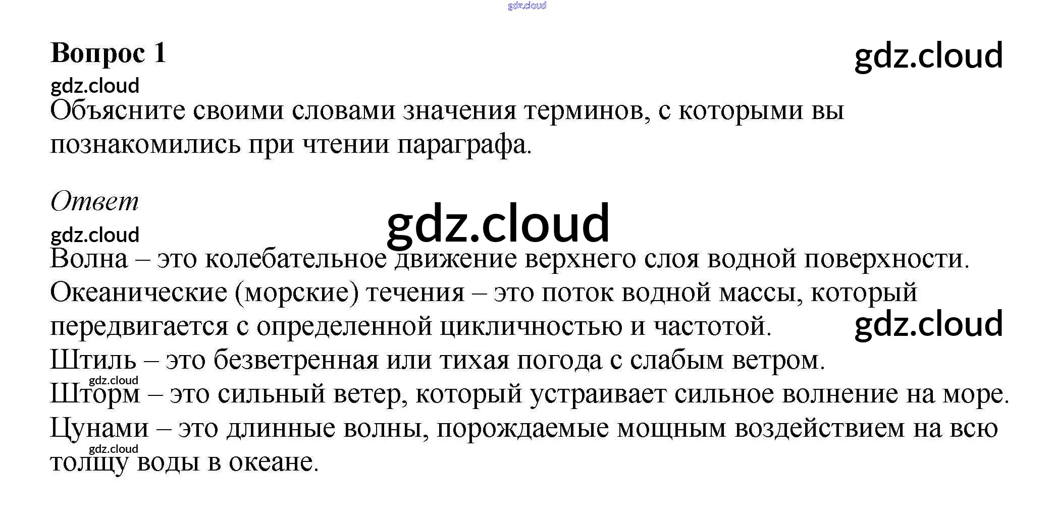 Вопросы и задания §41. Движение вод в Мировом океане по Географии 5, 6 класс Учебник Климанова Вертикаль Дрофа