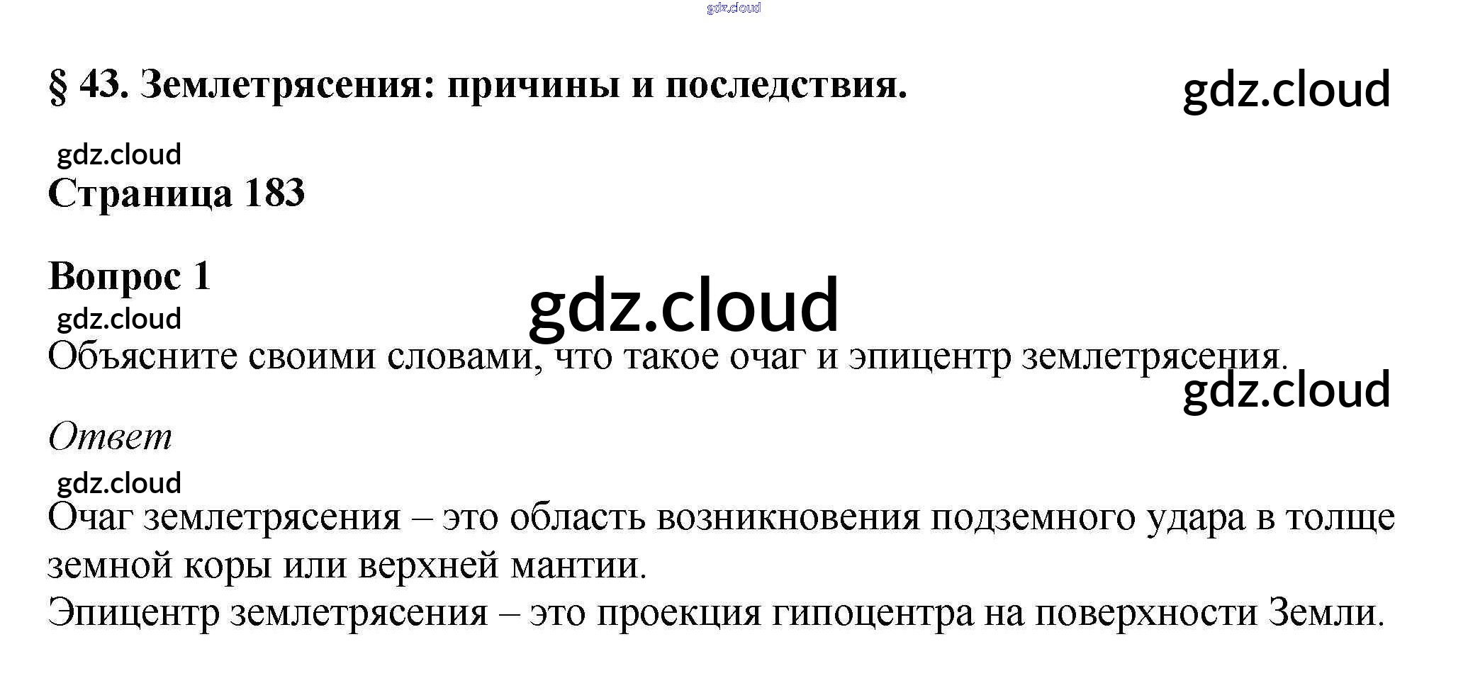 Вопросы и задания §43. Землетрясения: причины и последствия по Географии 5, 6 класс Учебник Климанова Вертикаль Дрофа
