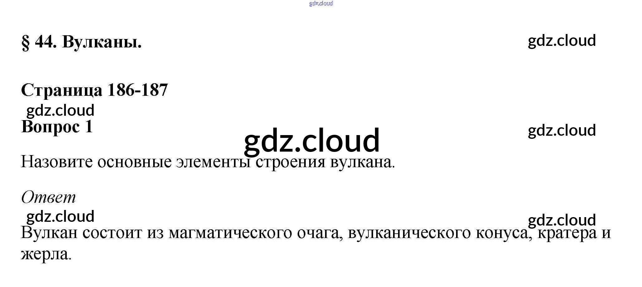Вопросы и задания §44. Вулканы по Географии 5, 6 класс Учебник Климанова Вертикаль Дрофа