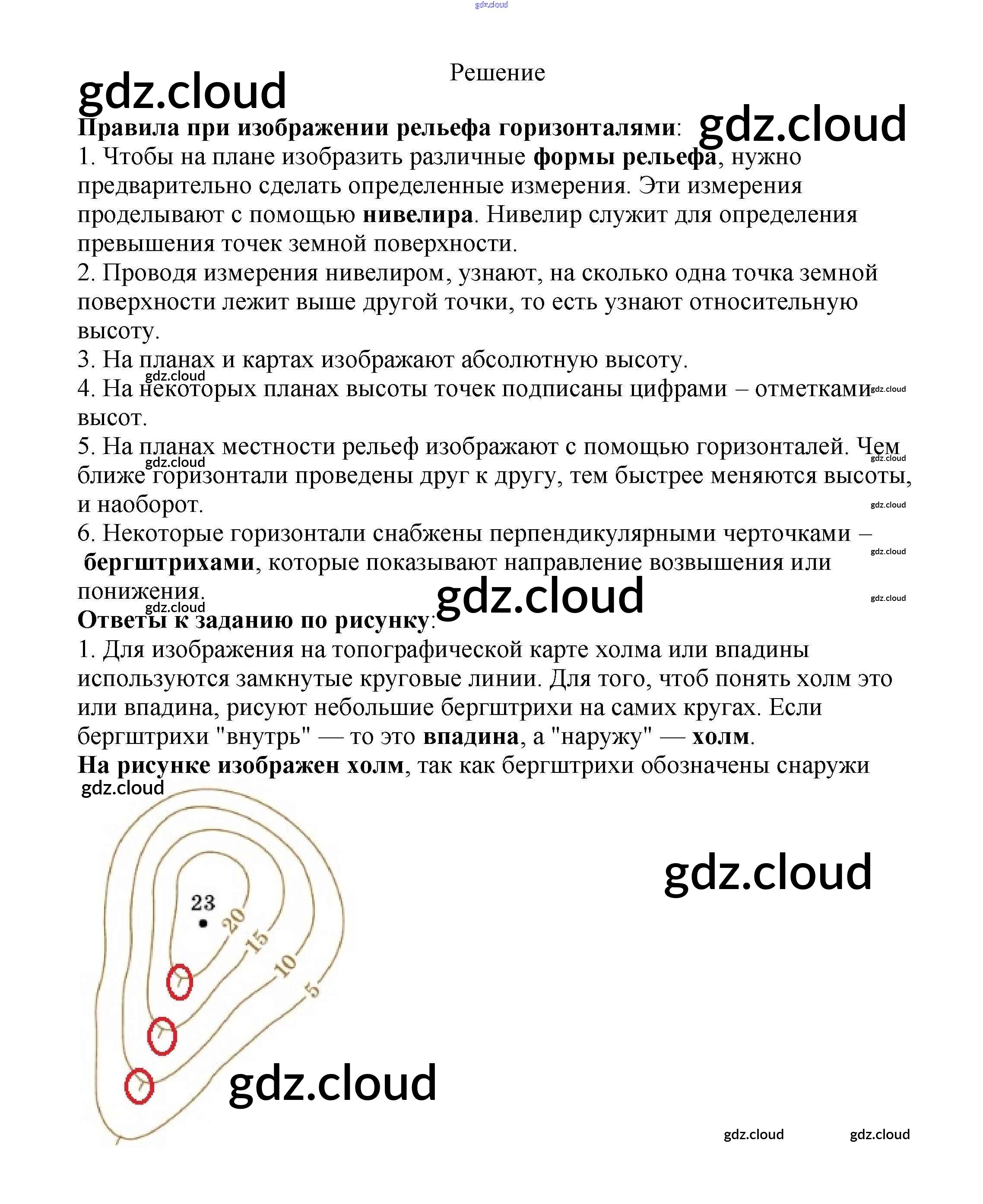 Вопросы к рисункам §45. Изображение рельефа на планах местности и географических картах по Географии 5, 6 класс Учебник Климанова Вертикаль Дрофа