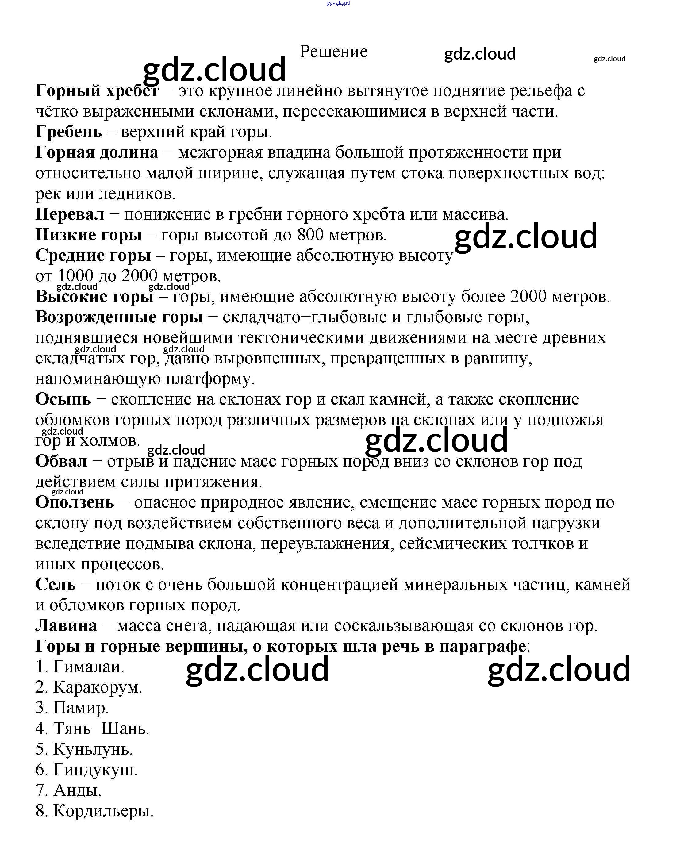 Вопросы и задания §46. Горы по Географии 5, 6 класс Учебник Климанова Вертикаль Дрофа