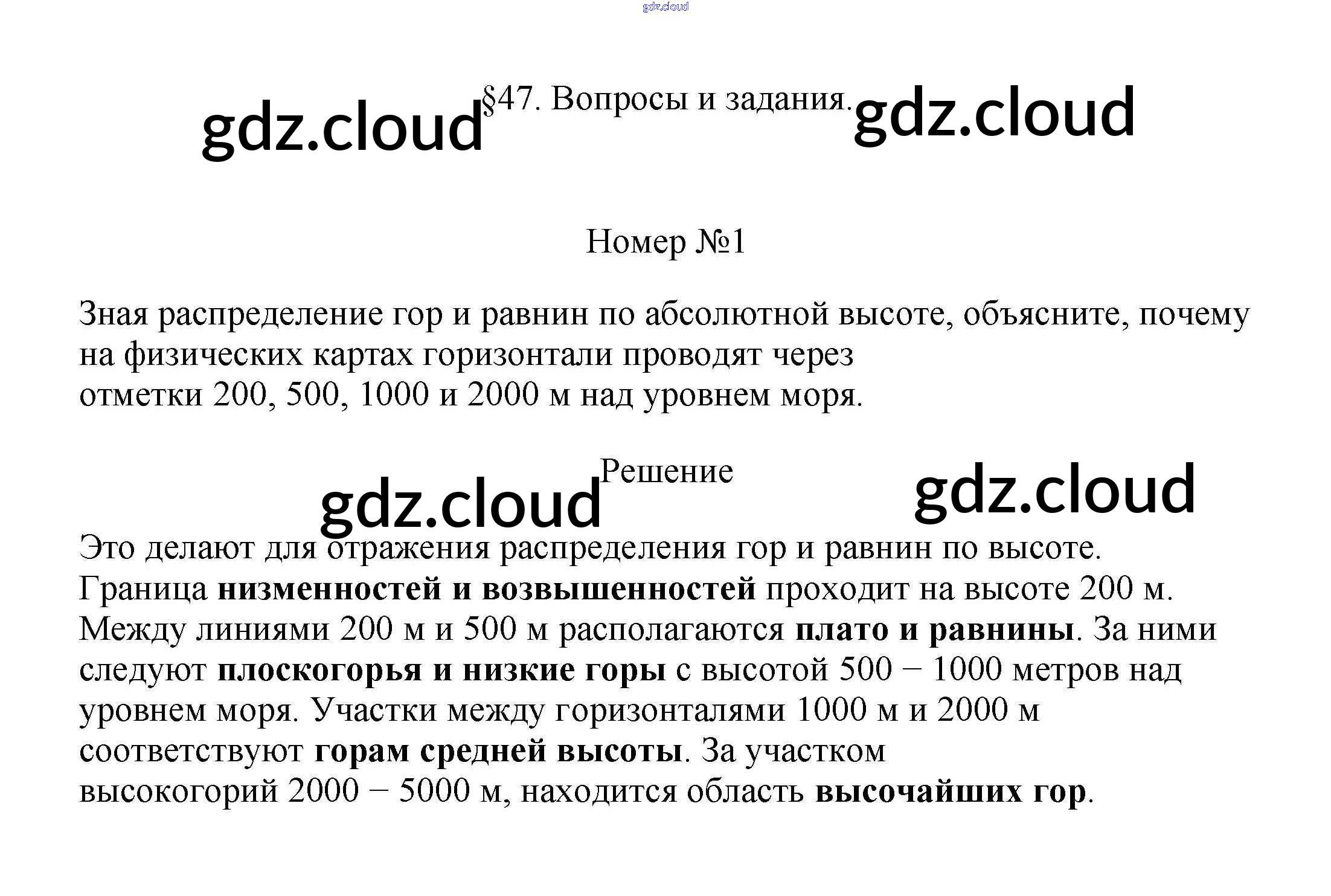 Вопросы и задания §47. Равнин по Географии 5, 6 класс Учебник Климанова Вертикаль Дрофа