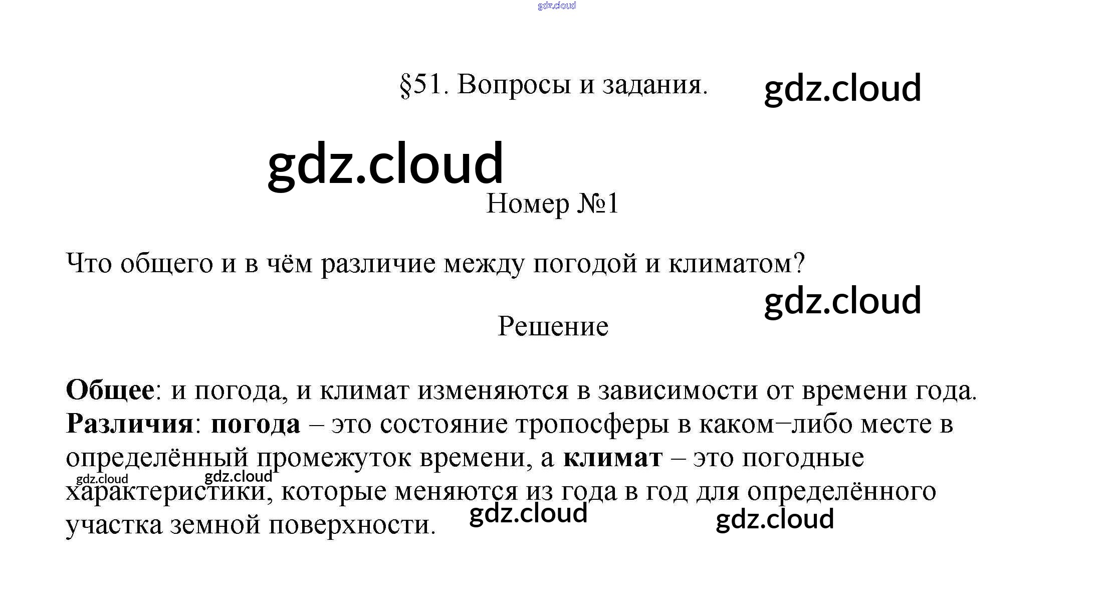 Вопросы и задания §51. Погода и климат по Географии 5, 6 класс Учебник Климанова Вертикаль Дрофа