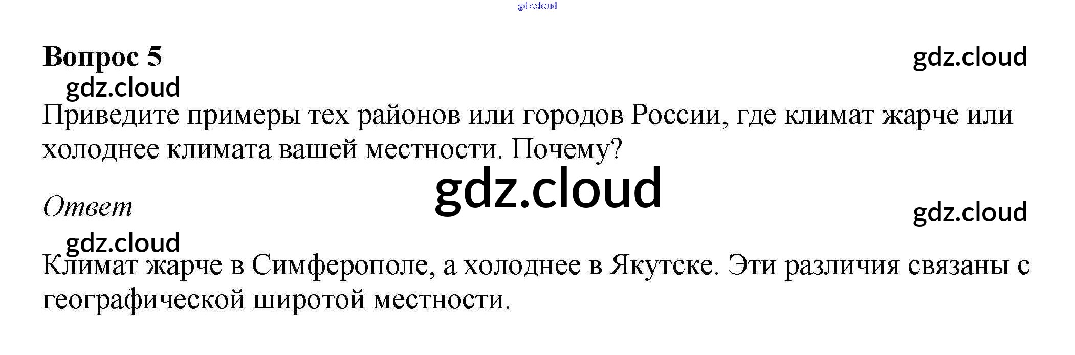 Ответ на задание 5 Учебник География за 5, 6 (пятый, шестой) класс Климанова, Климанов, Ким Вертикаль 2017