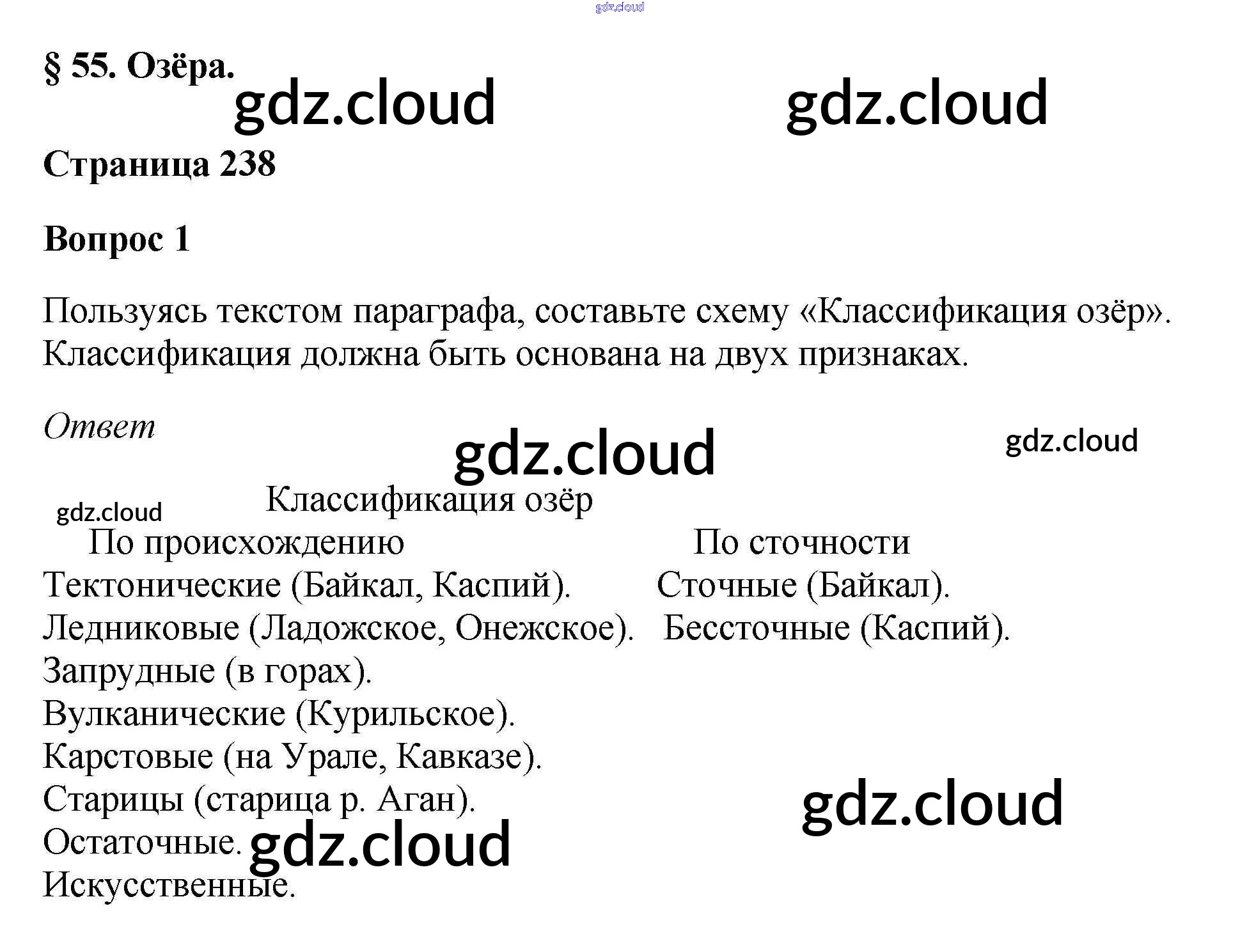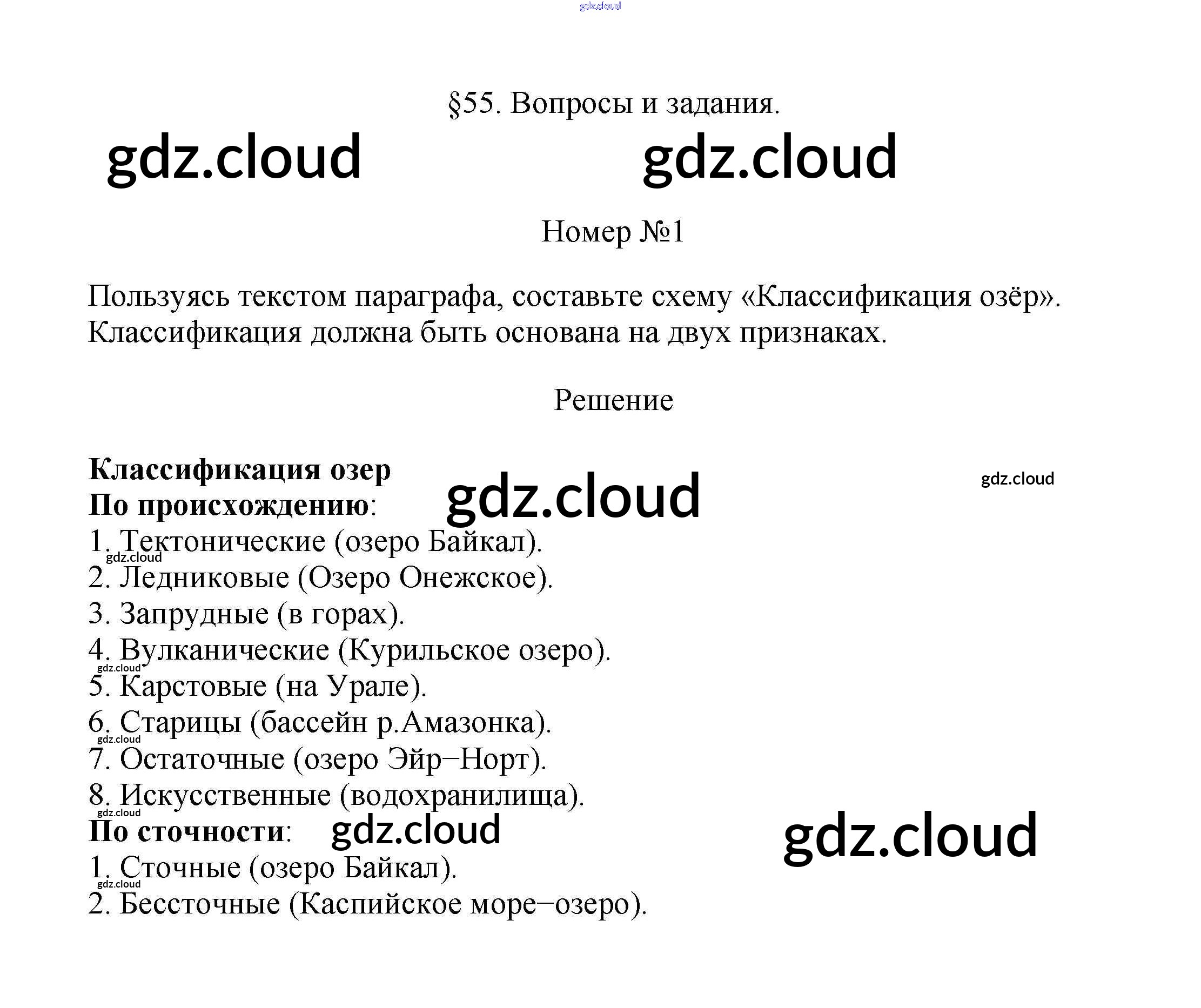 Вопросы и задания §55. Озёра по Географии 5, 6 класс Учебник Климанова Вертикаль Дрофа