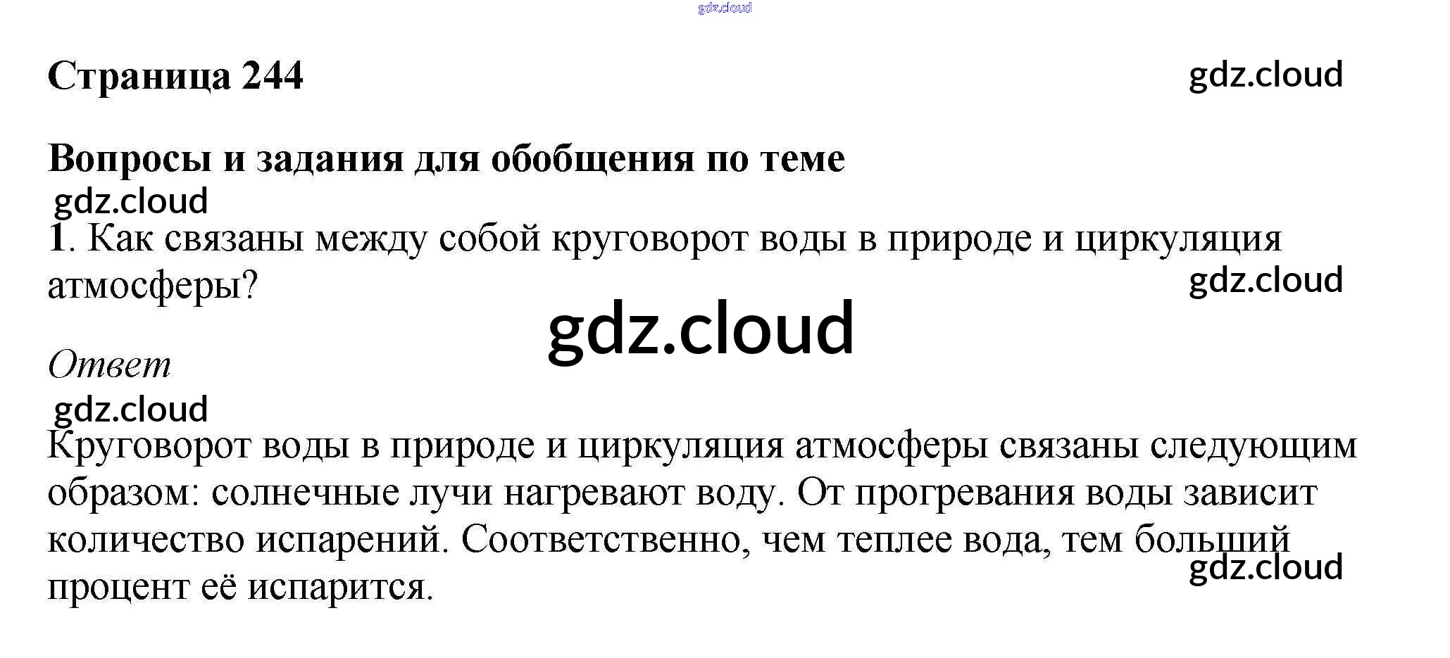 Вопросы и задания для обобщения по теме 14 по Географии 5, 6 класс Учебник Климанова Вертикаль Дрофа