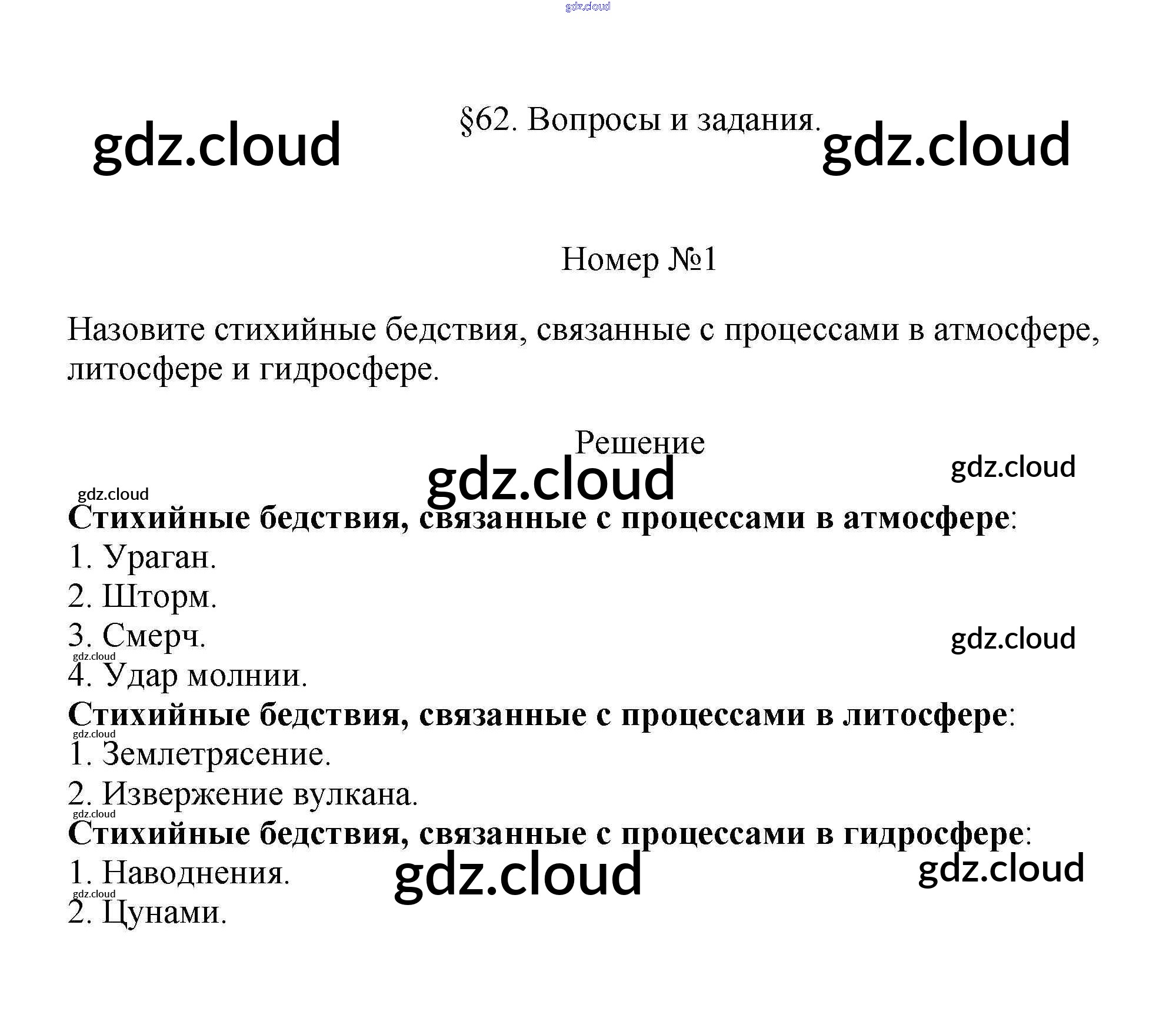 Вопросы и задания §62. Стихийные бедствия и человек по Географии 5, 6 класс Учебник Климанова Вертикаль Дрофа