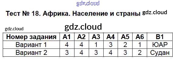Ответы к Тестам по Географии 7 класс Контрольно-измерительные материалы (КИМ) Жижина ВАКО