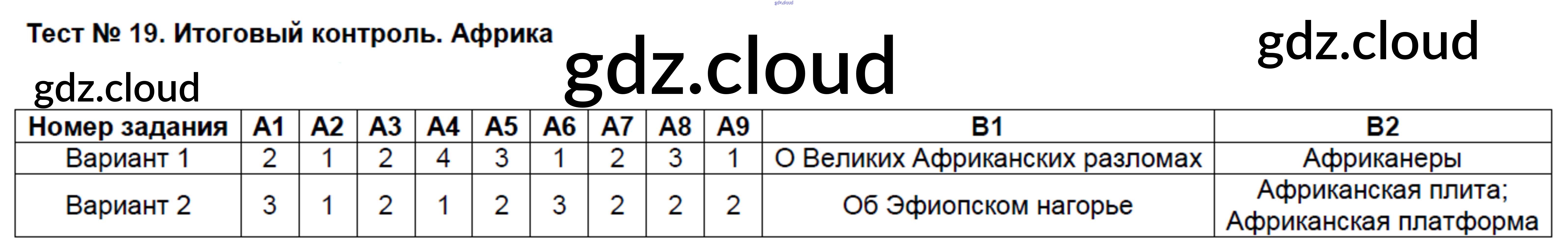 Ответы к Тестам по Географии 7 класс Контрольно-измерительные материалы (КИМ) Жижина ВАКО