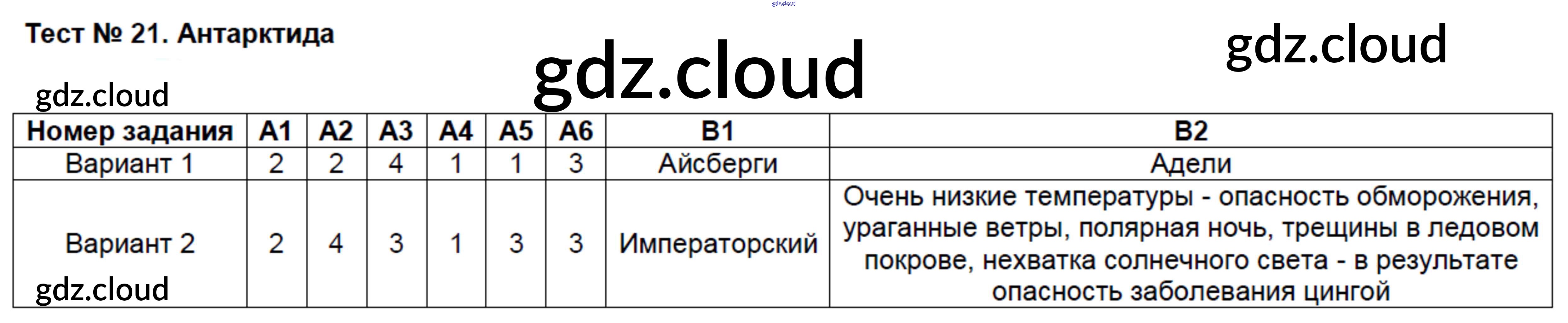 Ответы к Тестам по Географии 7 класс Контрольно-измерительные материалы (КИМ) Жижина ВАКО