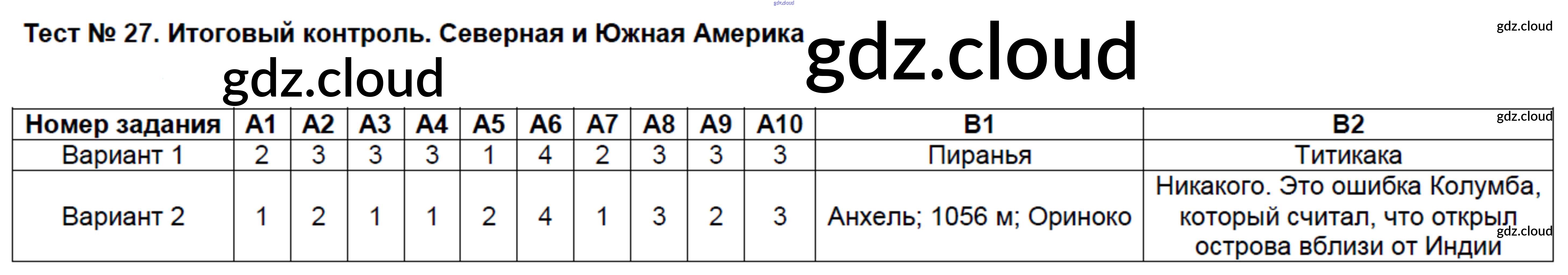 Ответы к Тестам по Географии 7 класс Контрольно-измерительные материалы (КИМ) Жижина ВАКО