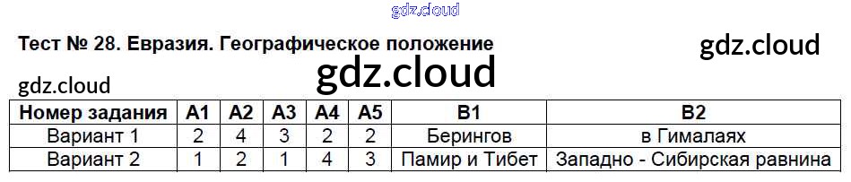 Ответы к Тестам по Географии 7 класс Контрольно-измерительные материалы (КИМ) Жижина ВАКО